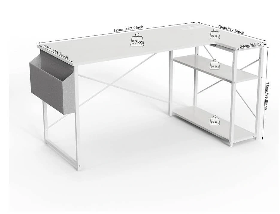 The L shape desk provides ample space for your computer, monitor, and a variety of items. Built with power outlets, this desk offers two AC outlets, one USB port, and one Type-C port, simplifying charging and cutting down on cable clutter. Its small size makes it suitable for smaller spaces, yet it offers ample storage space with its multiple shelves. The L-shaped desk fits perfectly into corner space in a bedroom, office, living room. The reversible design allows you install the smaller desktop part either in left or right side. The gaming table is made of durable MDF board and stable metal frame, ensuring that it's sturdy enough to support all your office equipments. The X-frame structure enhances stability and minimizes wobbling. Pick up Niagara Falls