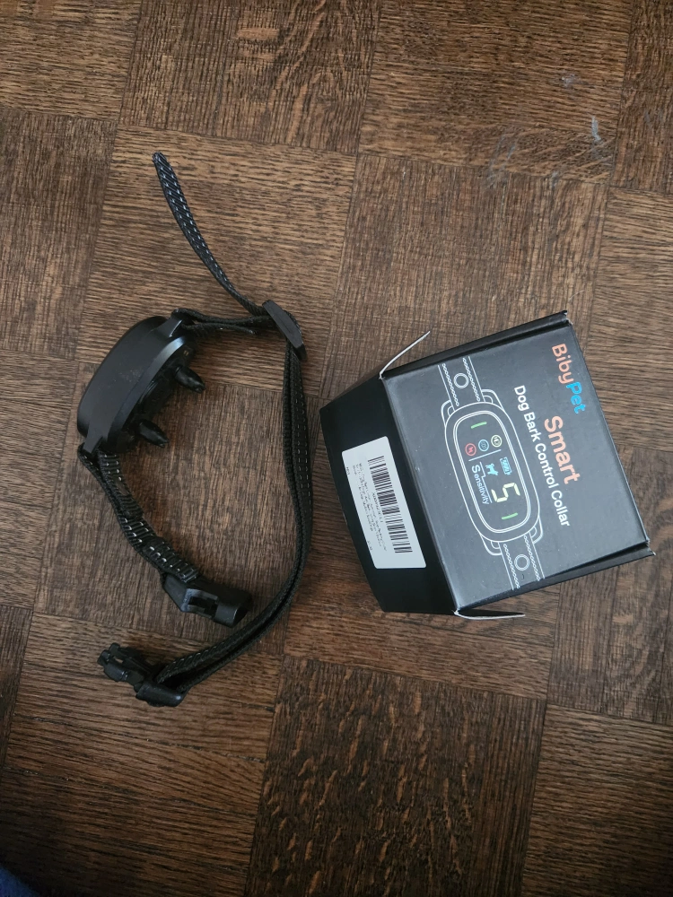 Selling a gently used BibyPet Smart Dog Bark Control Collar! Uses Sound & Vibration (you can turn off Shock Feature) It's still in its original box and has been gently used. (My dog stopped barking excessively on the Sound Mode Only) This collar is designed to help control your dog's barking with its smart control features. Comes with adjustable sensitivity settings to suit your dog's needs.