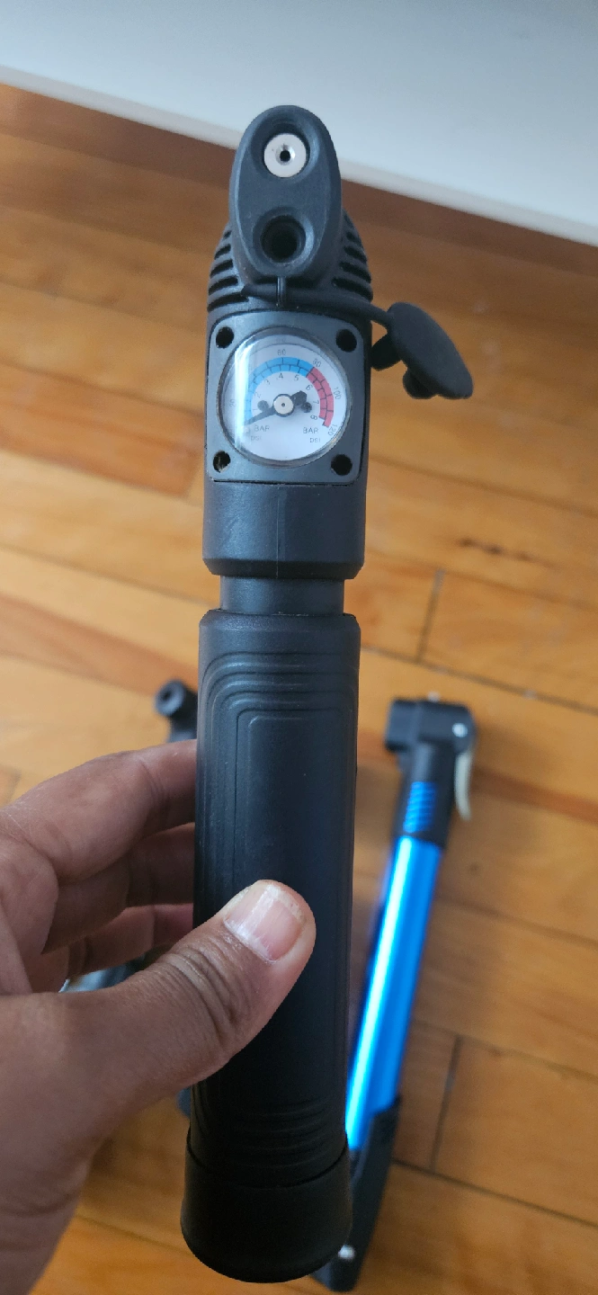 Selling a handy bicycle hand pump. It comes with a built-in gauge so you can easily see the pressure as you pump. Great for topping off your tires before a ride!