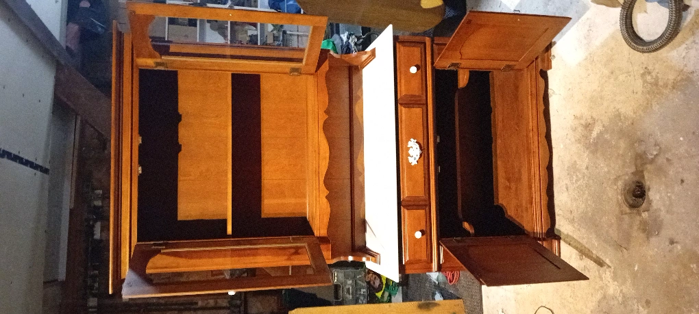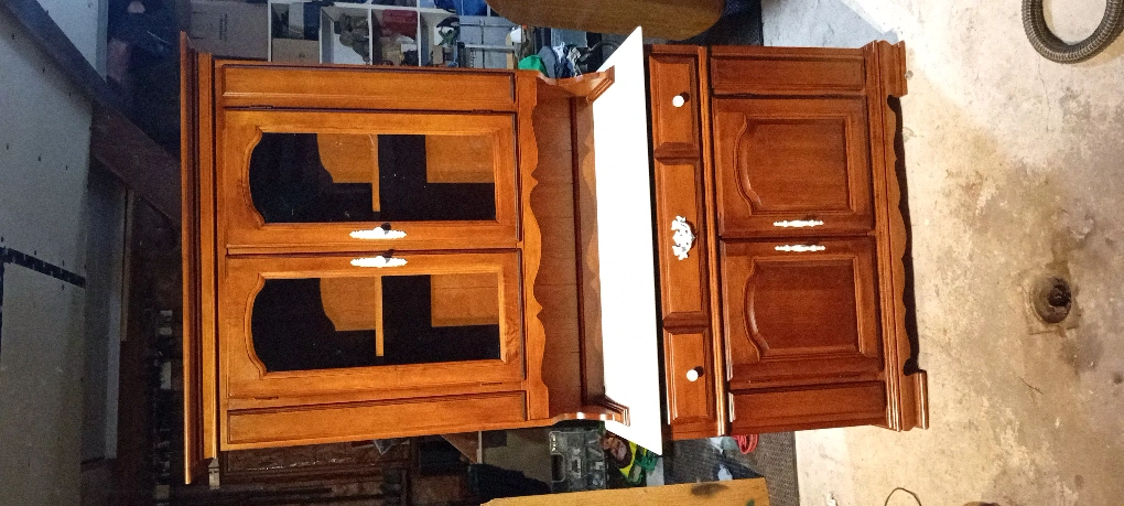 Selling this vintage solid maple wooden hutch cabinet made in Canada. It features glass doors on the upper section and solid doors on the lower section. Top drawer is a single drawer great for table clothes etc. The upper section has plate grooves on the adjustable shelf and the bottom, to display decorative plates. The back has vertical v grooves for that high end look... Perfect for adding storage and display space to your home. Bidding starts at $300 and ends Sept 2nd. highest bid gets it...