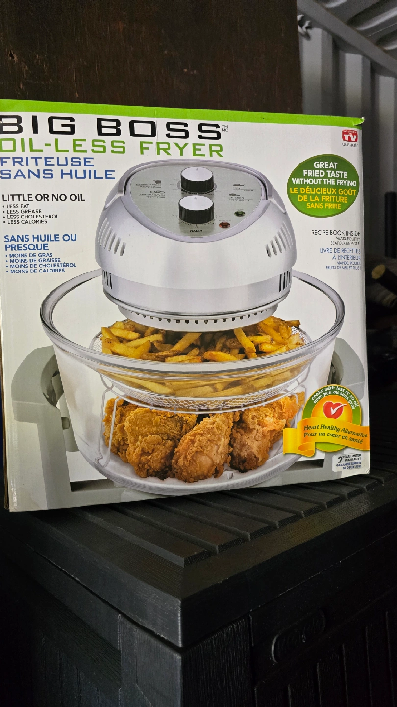 Get that fried taste without all the oil with this Big Boss Oil-Less Fryer! It uses little to no oil, so you can enjoy your favourite fried foods with less fat, grease, cholesterol, and calories. A recipe book is included for meats, poultry, seafood, and more