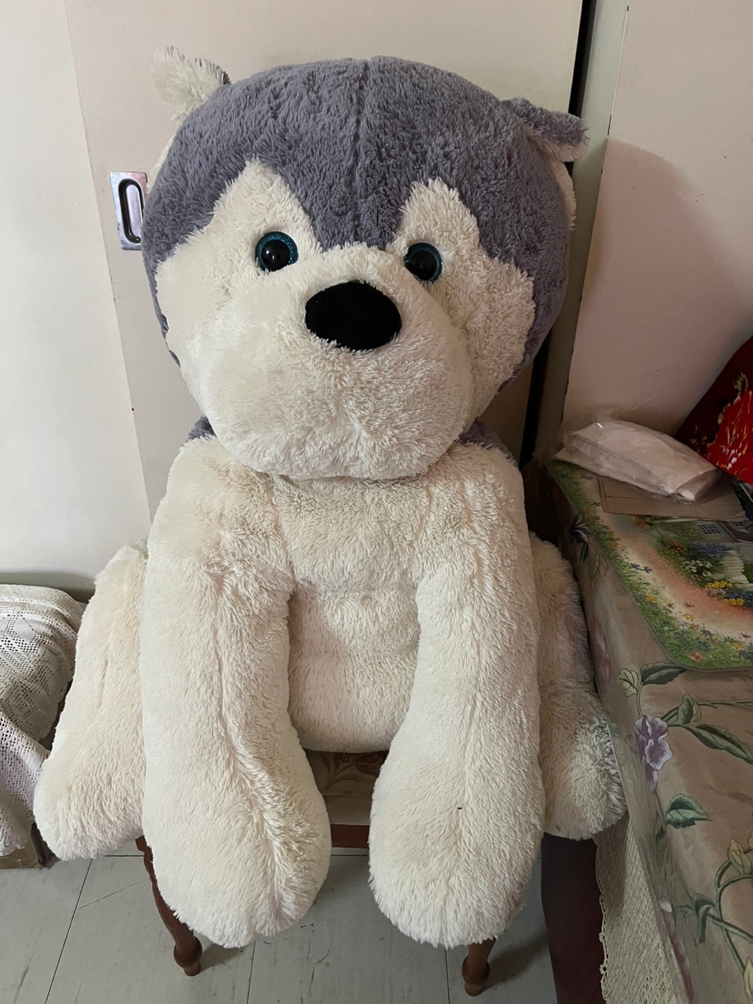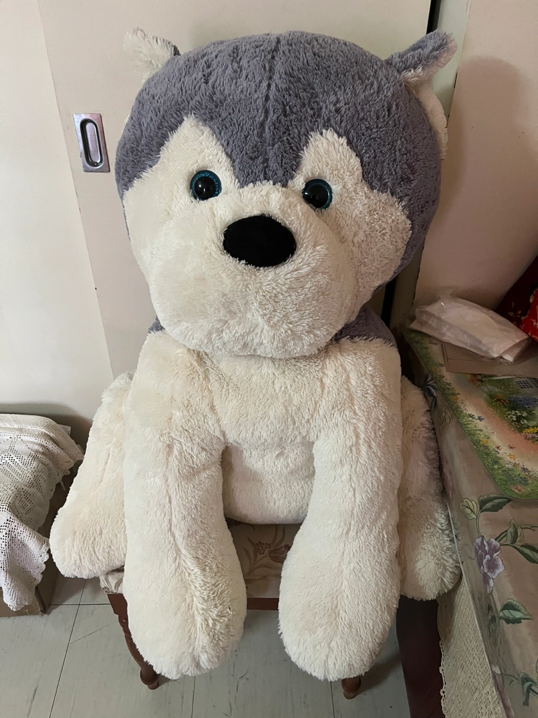 A cute and cuddly big husky dog plush toy! It's in great condition and ready for a new home. Perfect for kids or anyone who loves dogs