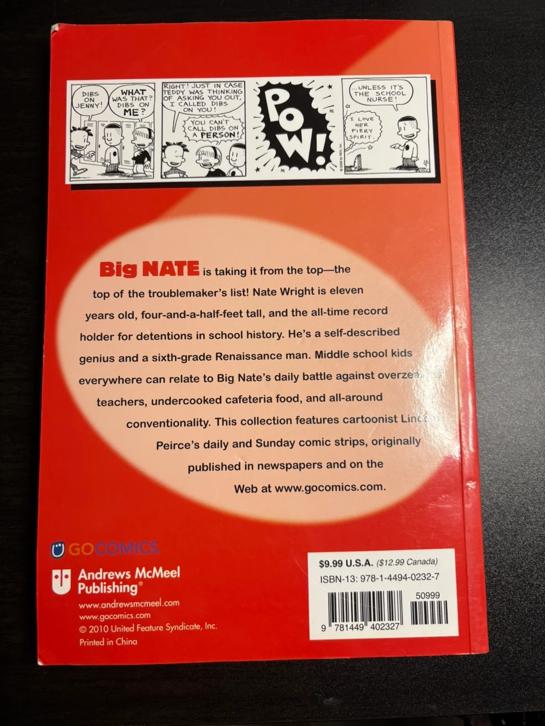 Selling a copy of "Big Nate: From the Top" by Lincoln Peirce! It's a fun read for middle school kids and anyone who enjoys comic strips. This collection features daily and Sunday comic strips. Pick up only