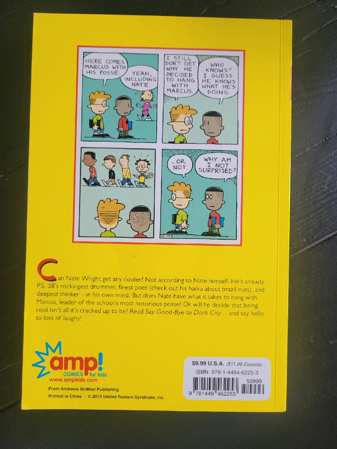 Selling the book 'Big Nate: Say Good-Bye to Dork City' by Lincoln Peirce. It's a comic book for kids published by Andrews McMeel Publishing. Originally retailed for $11.99 CAD