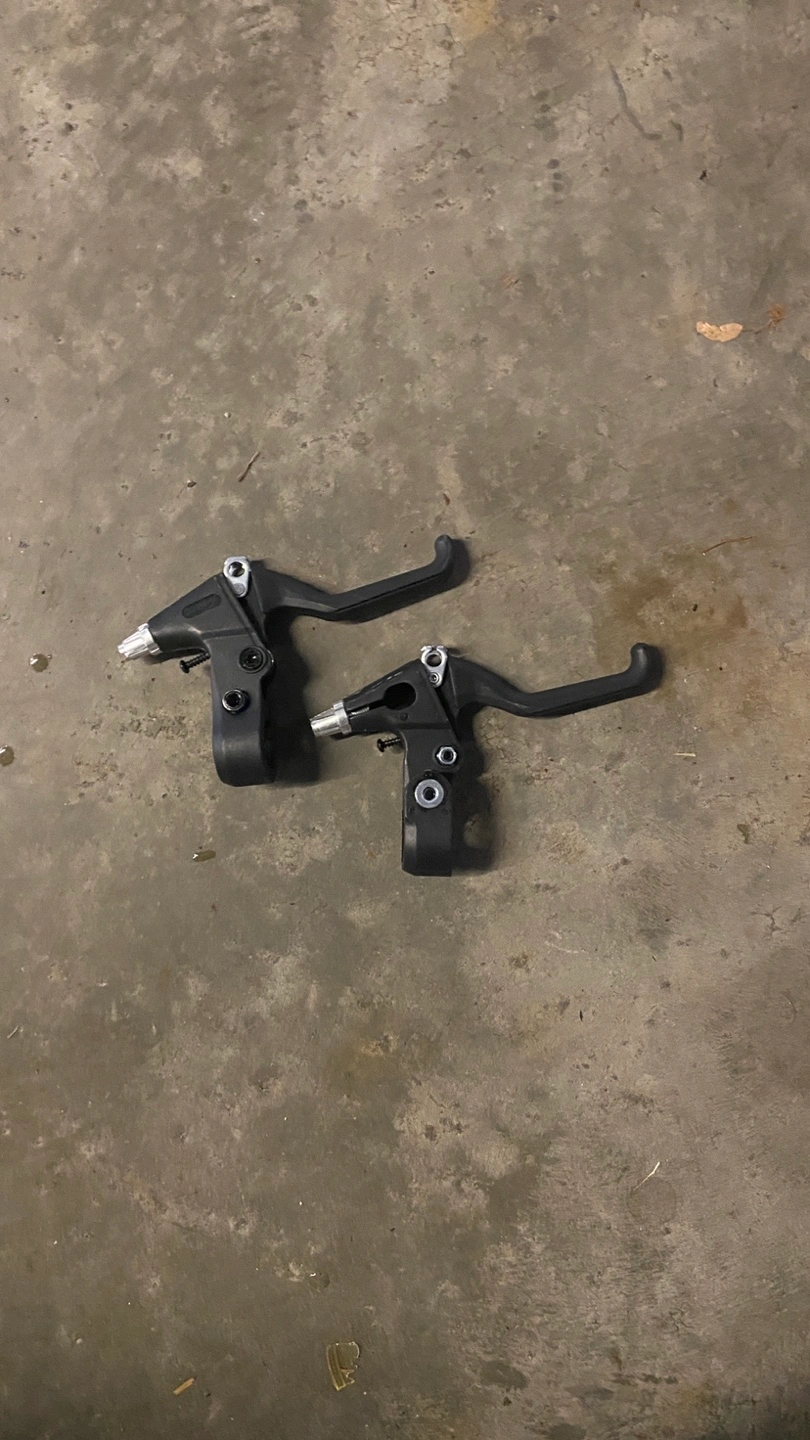 Selling a pair of bike brake levers in black. They appear to be in good condition and ready to be installed on your bicycle