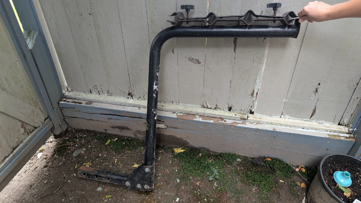 Give away a free bike rack carrier that attaches to a hitch mount 2". It's black and appears to be in used condition with some wear and tear.