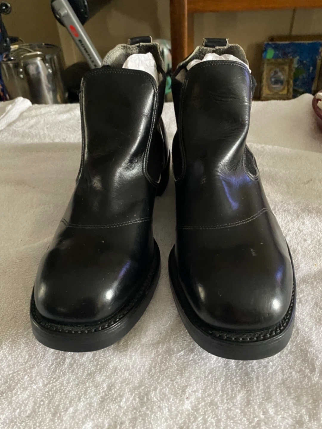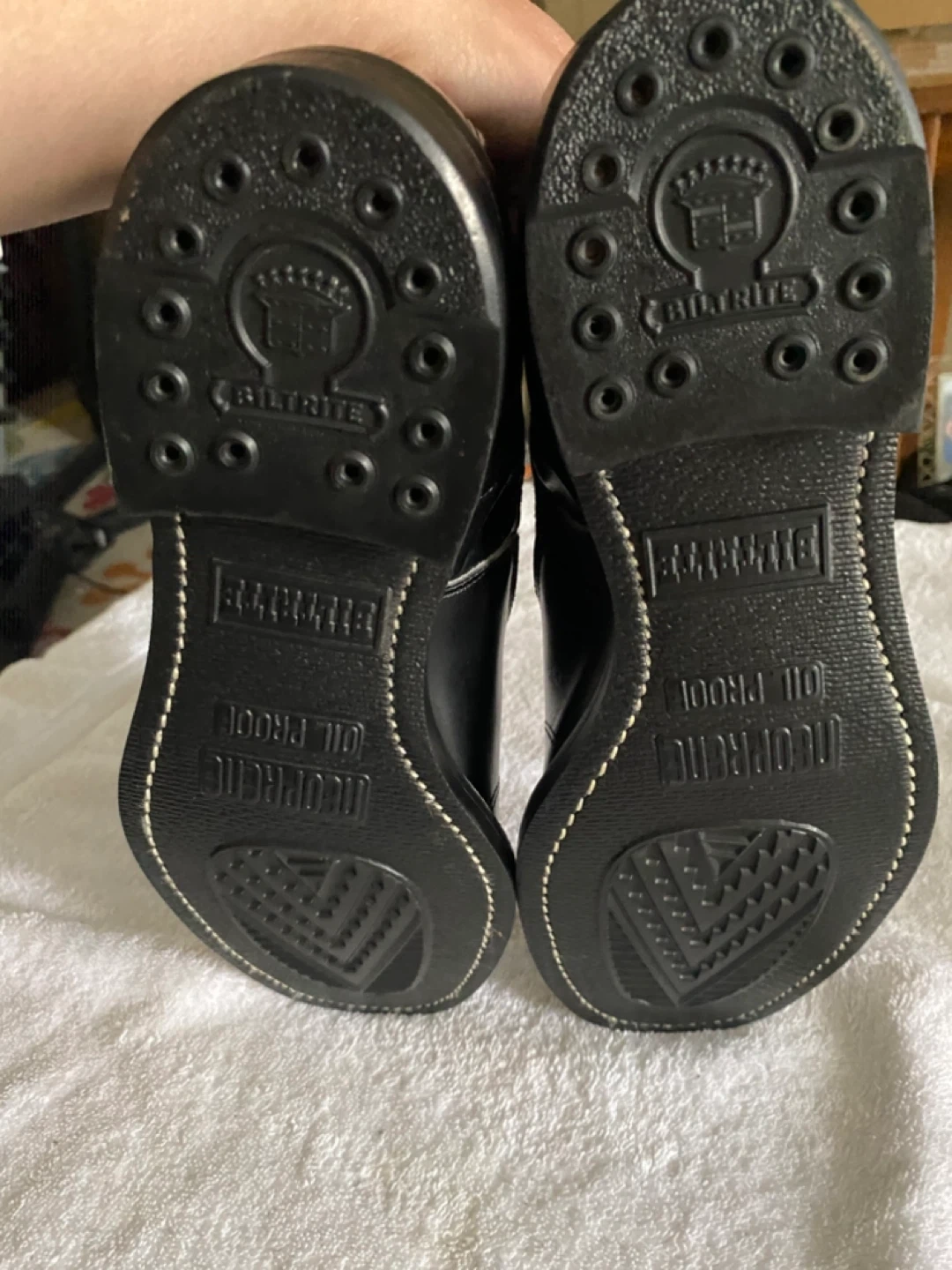 Selling a pair BILTRITE SIZE 11, slip on black steel toe oil resistant leather safety boots. They are brand new never worn in immaculate condition Great for every work day wear!