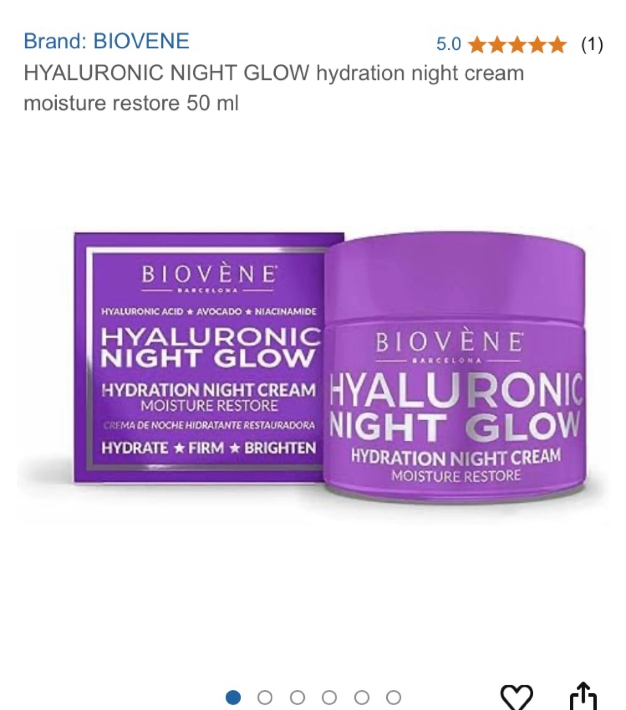 Hydration night cream. Moisture restore. Contains hyaluronic acid, avocado, and niacinamide. Hydrates, firms, and brightens. 50 ml. Cash Only