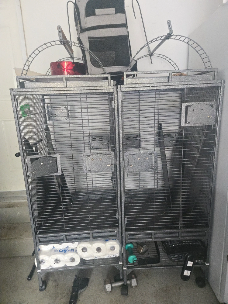 1 X Large Bird Cage for Sale 🐦 Spacious and sturdy bird cage, perfect for parrots, cockatiels, budgies, and other medium-to-large birds. The cage has multiple perches, feeding stations, and wide doors for easy access. Strong metal construction ensures durability, while the large size gives your feathered friends plenty of room to move, play, and spread their wings. ✨ Features: Large, roomy design for comfort Secure locking doors Easy to clean with a removable tray Suitable for single or multiple birds Great condition and ready for a new home.