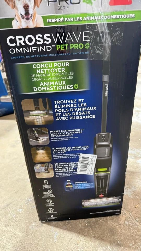 Selling a Used, Like New BISSELL CrossWave OmniFind Pet Pro. This is a great deal on the best all-in-one floor cleaner! One-Step Clean: Vacuums up dirt and washes your floors at the same time! Cordless: No more hassle with plugs and cords—take it anywhere! Pet Friendly: Perfect for picking up pet hair and tackling tough pet messes on hard floors and rugs. Hygienic: Keeps dirty water separate from clean water. Heads Up: The attached handle is different from the factory one, but the machine works perfectly and is in like new condition. Cash or e-transfer. Available until sold – first come, first served. ✅ 📍 Pickup: St Catharines, ON. ⚠️ Heads up: Sold "As Is." Final sale, no returns or warranty. Please check and test on pickup! TAGS: CrossWave, BISSELL, Wet Dry, Cordless Mop, Floor Cleaner, Pet Pro, Home Cleaning, Local Deal, Like New, Amazon Liquidation