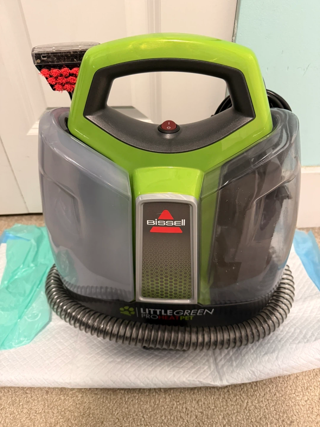 Selling a Bissell Little Green ProHeat portable carpet cleaner. It's in great condition and ready to help you tackle those tough stains! Perfect for carpets, upholstery, and more