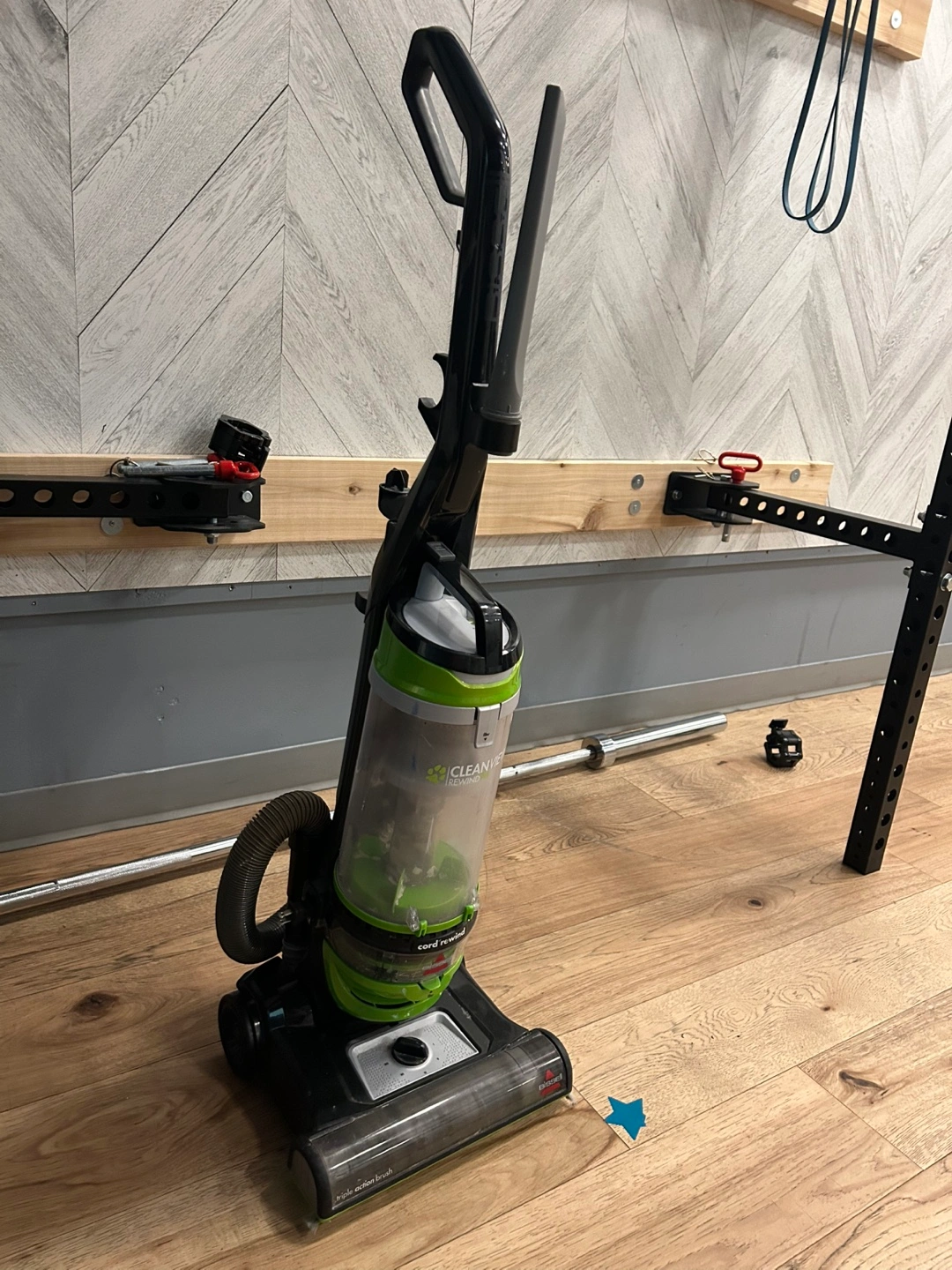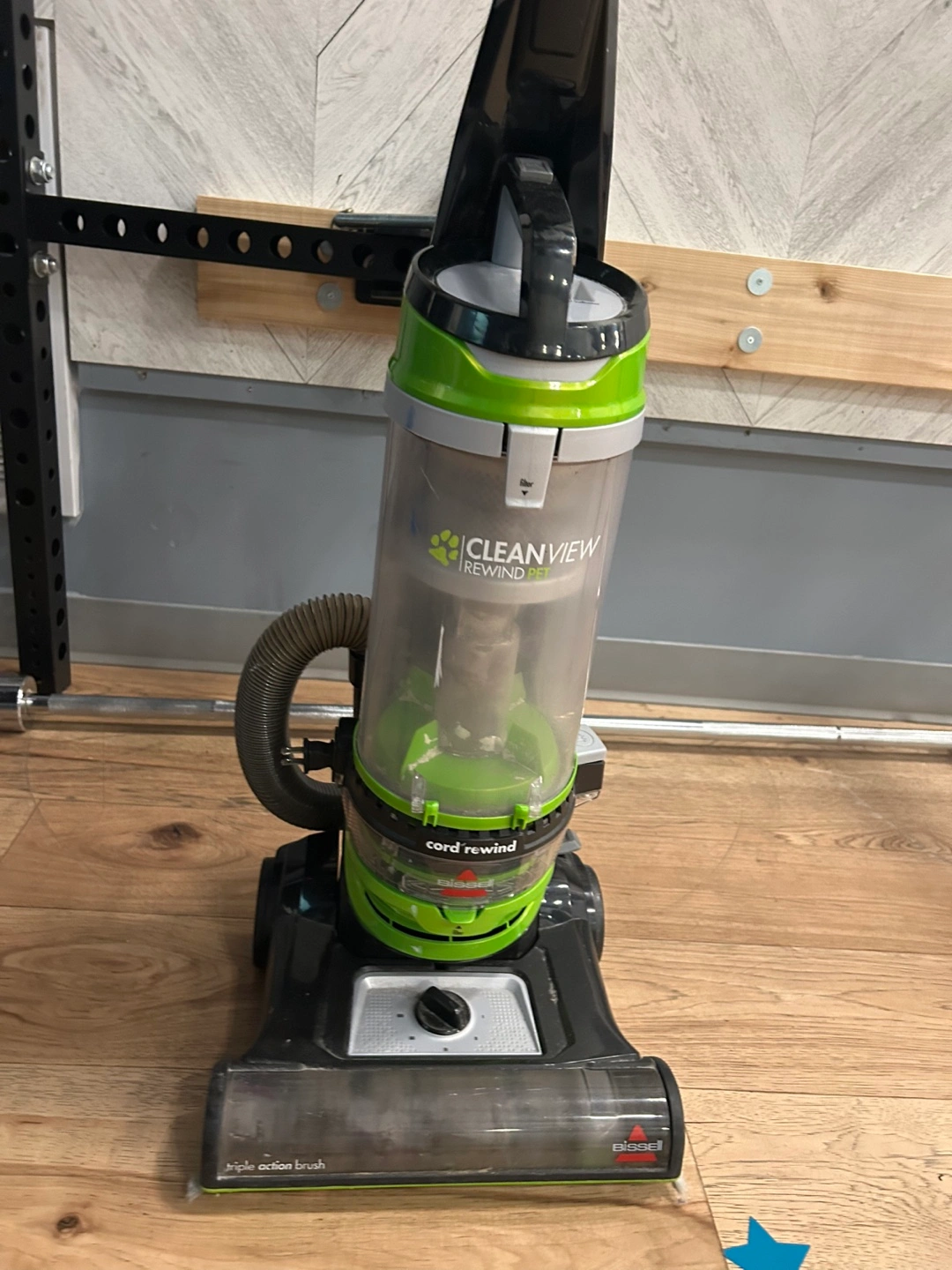 Lightweight upright vacuum. Cord rewind feature. Good for pet hair. Barely used condition. Original price $170.