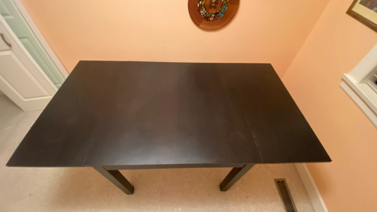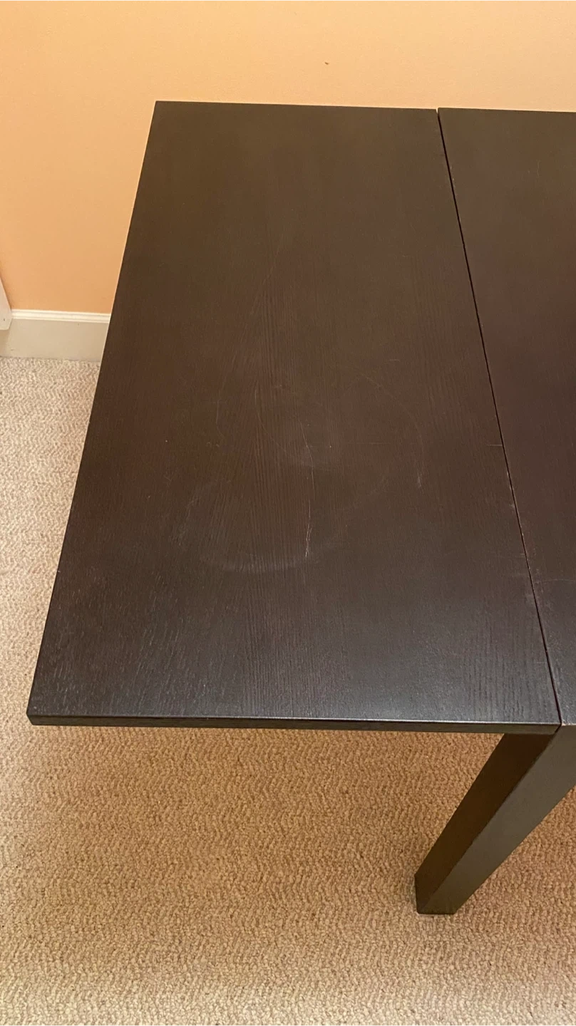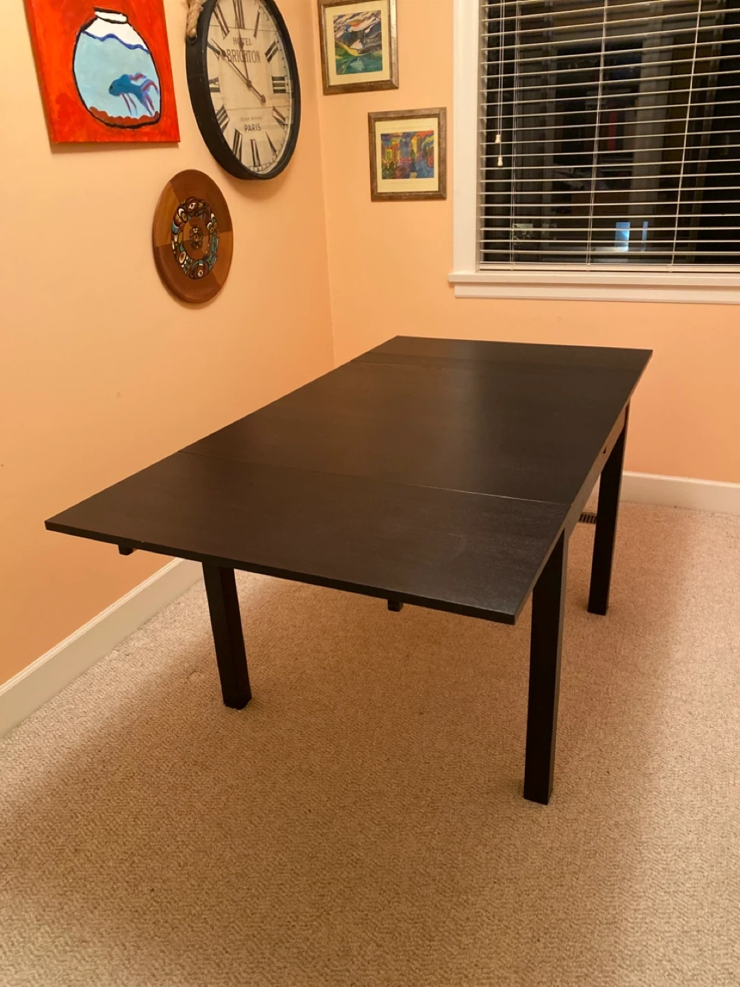 Selling BJURSTA rectangle, dark brown extendable dining table. It's in good condition and perfect for small spaces or for when you need extra room for guests. The table is a dark colour and has a simple, modern design. Product dimensions Length: 50 3/4" Min. length: 35 3/8" Max. length: 66 1/8" Width: 35 3/8" Height: 29 1/8" Length: 129 cm Min. length: 90 cm Max. length: 168 cm Width: 90 cm Height: 74 cm