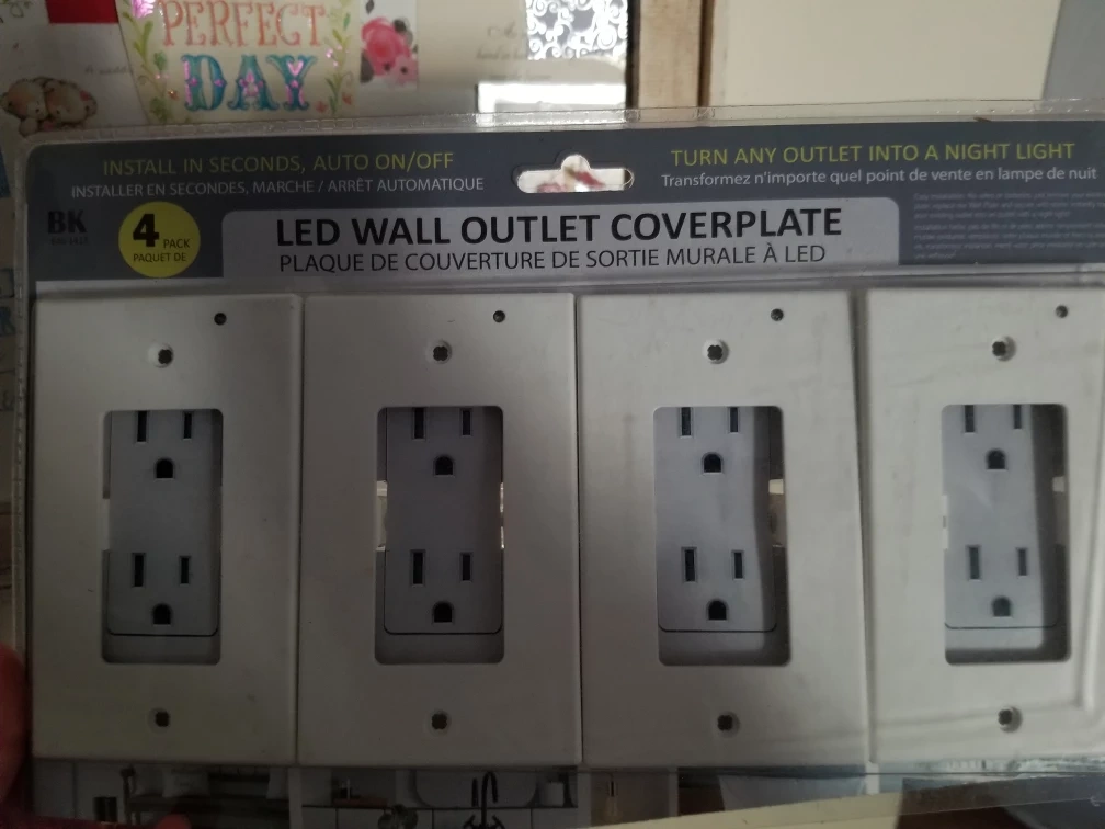 Selling a pack of 4 BK LED wall outlet coverplates! These are super easy to install in seconds and have an auto on/off feature. They also turn any outlet into a night light, which is pretty neat