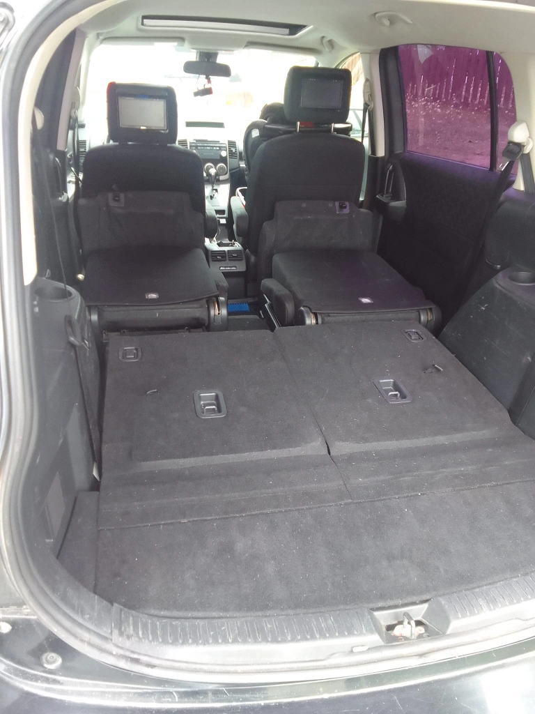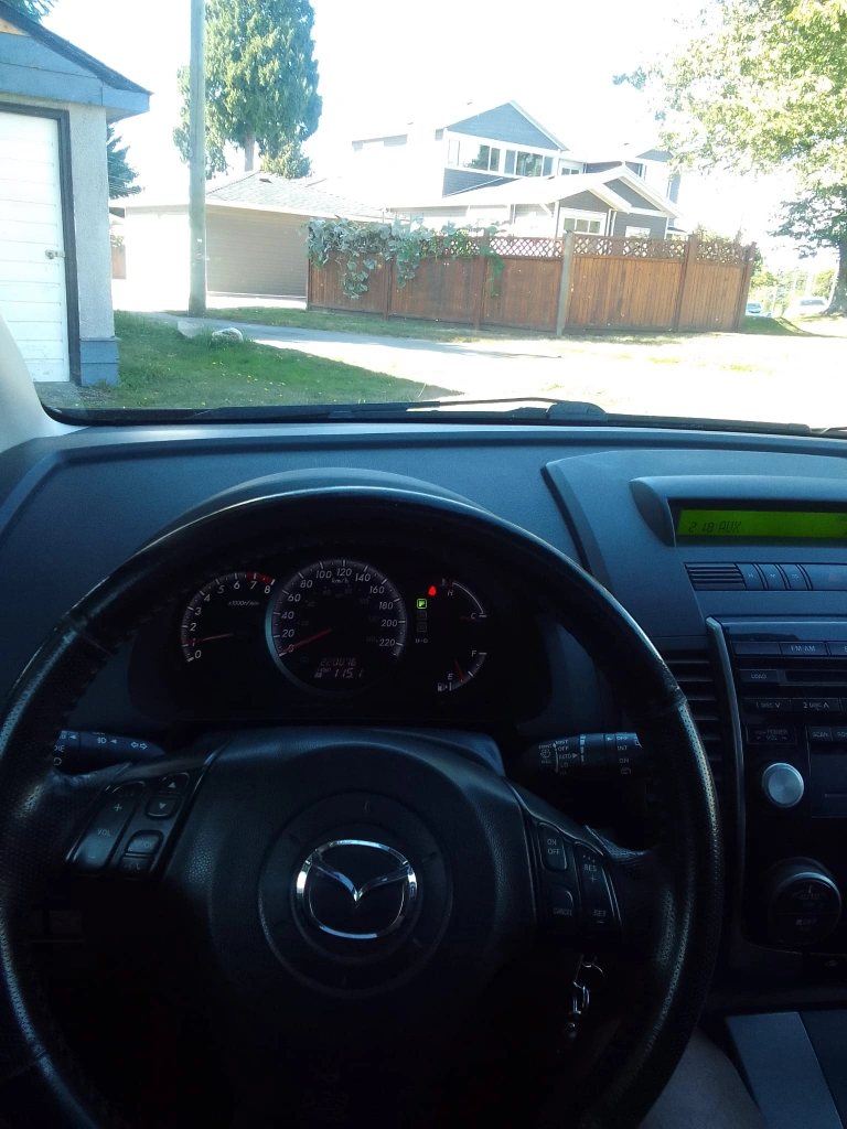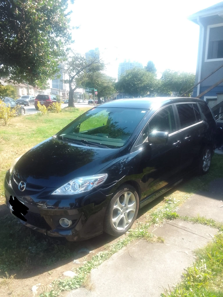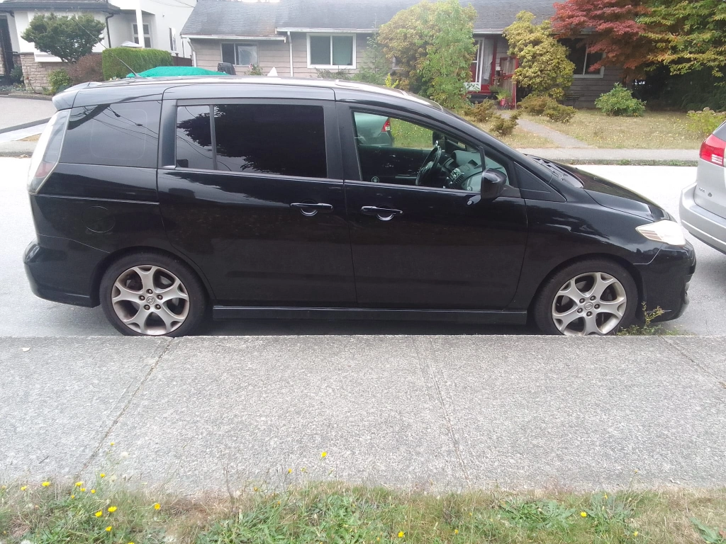 Selling a Mazda 5 minivan in black. It's in good condition and ready for a new owner. Perfect for families or anyone needing extra space. It has 220,076 km and comes with blackout windows, DVD player and screens for those in the backseats. New tires and breaks in late 2024.