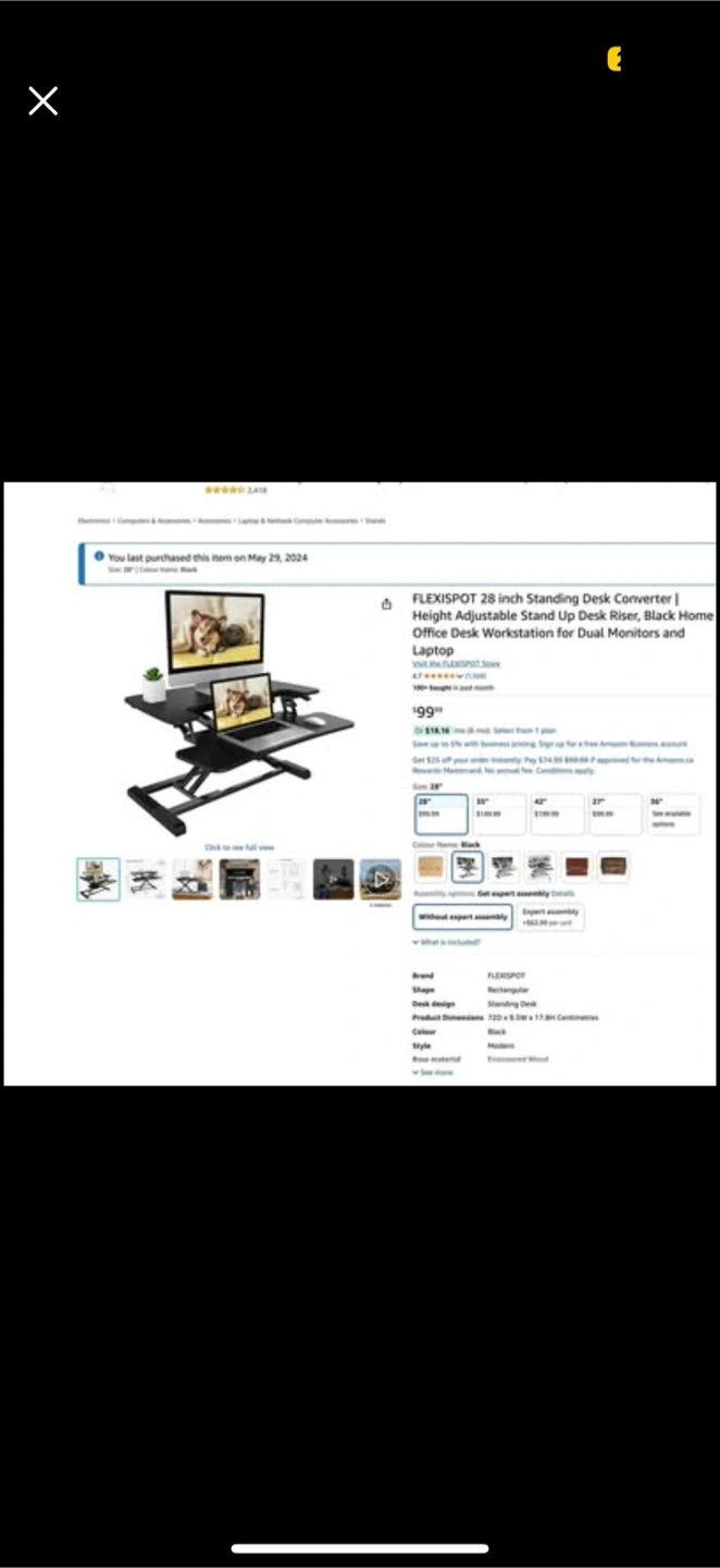 Selling my standing desk converter black from Amazon. Lightly used, no damage, just down sizing 72cm length 9.3cm W 17.8cm Height Heavy sturdy smooth lift Pick up Brentwood Originally bought for $100+