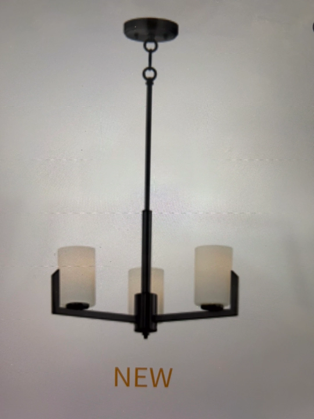 New black chandelier with three lights, a chain and a ceiling plate.
