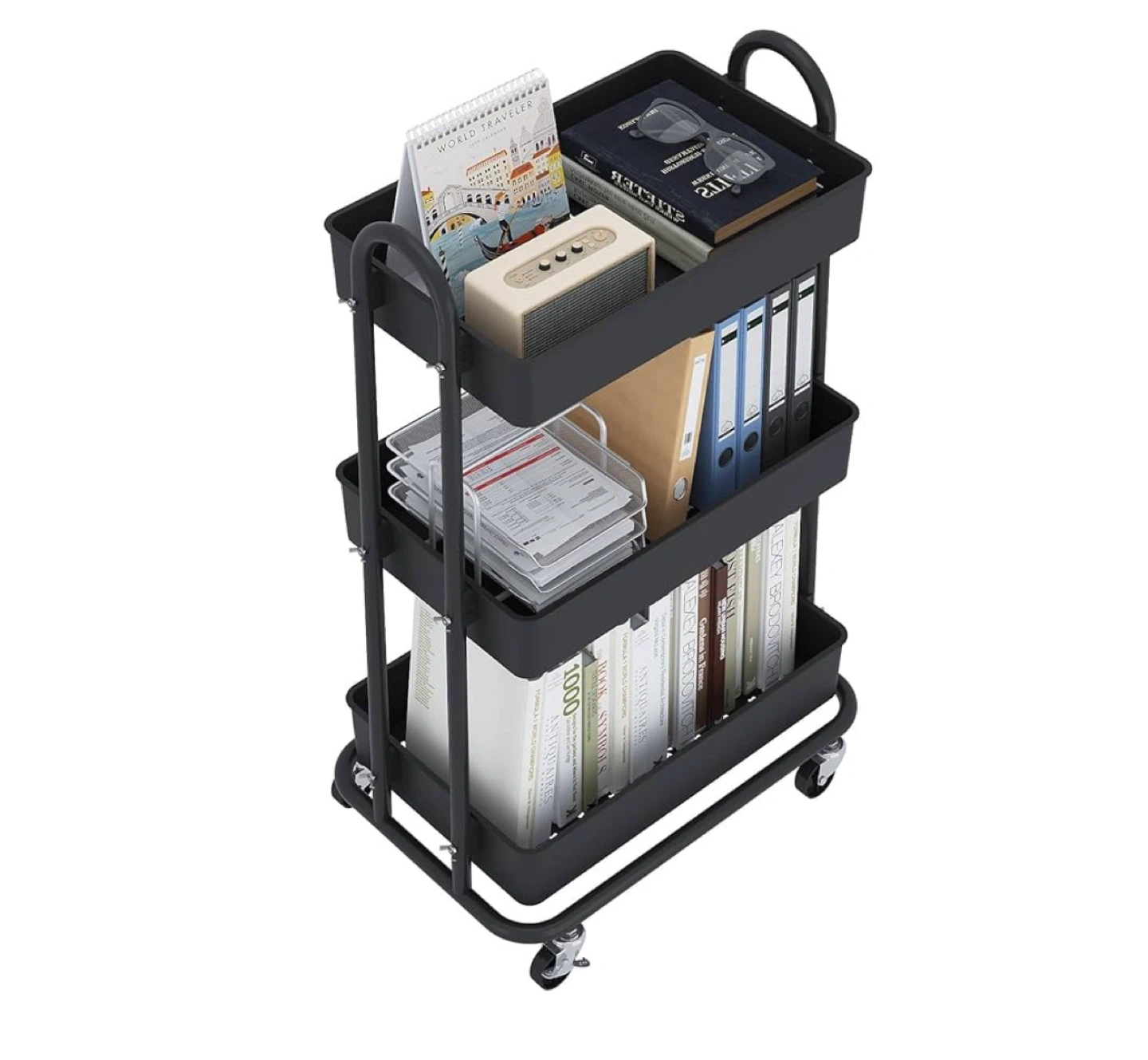 Black 3-Tier Rolling Utility Cart