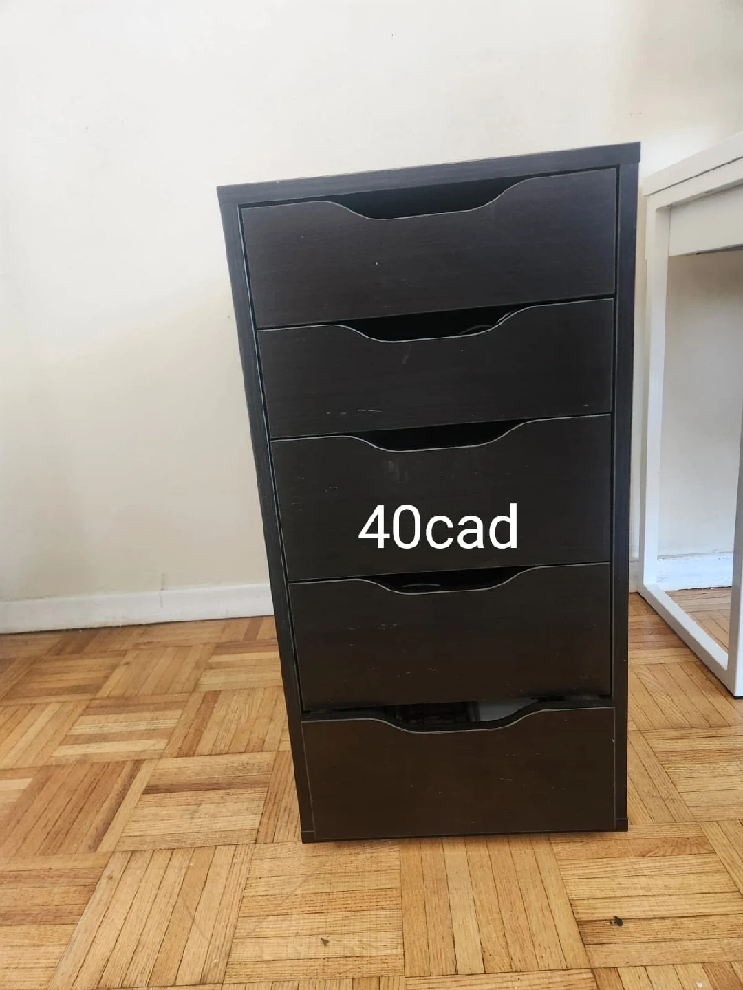 Selling a black dresser with five drawers. It's in good condition and ready for a new home!