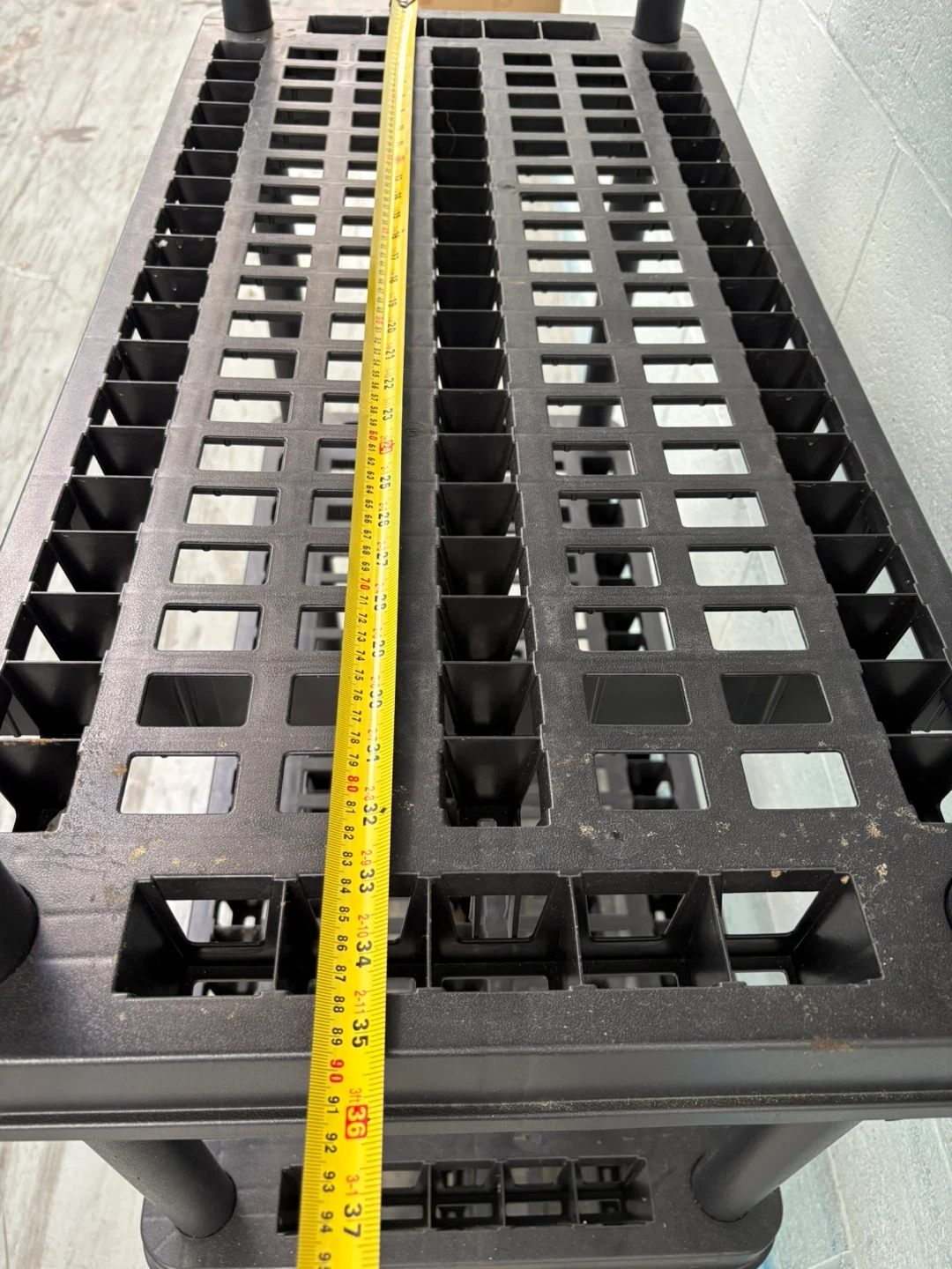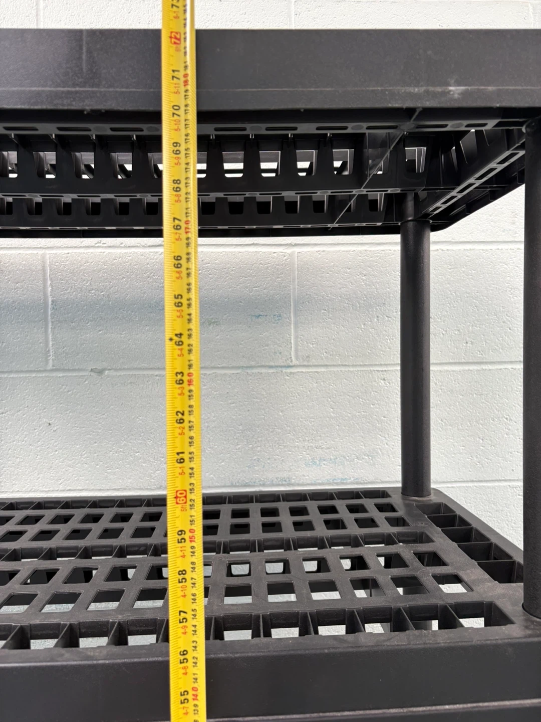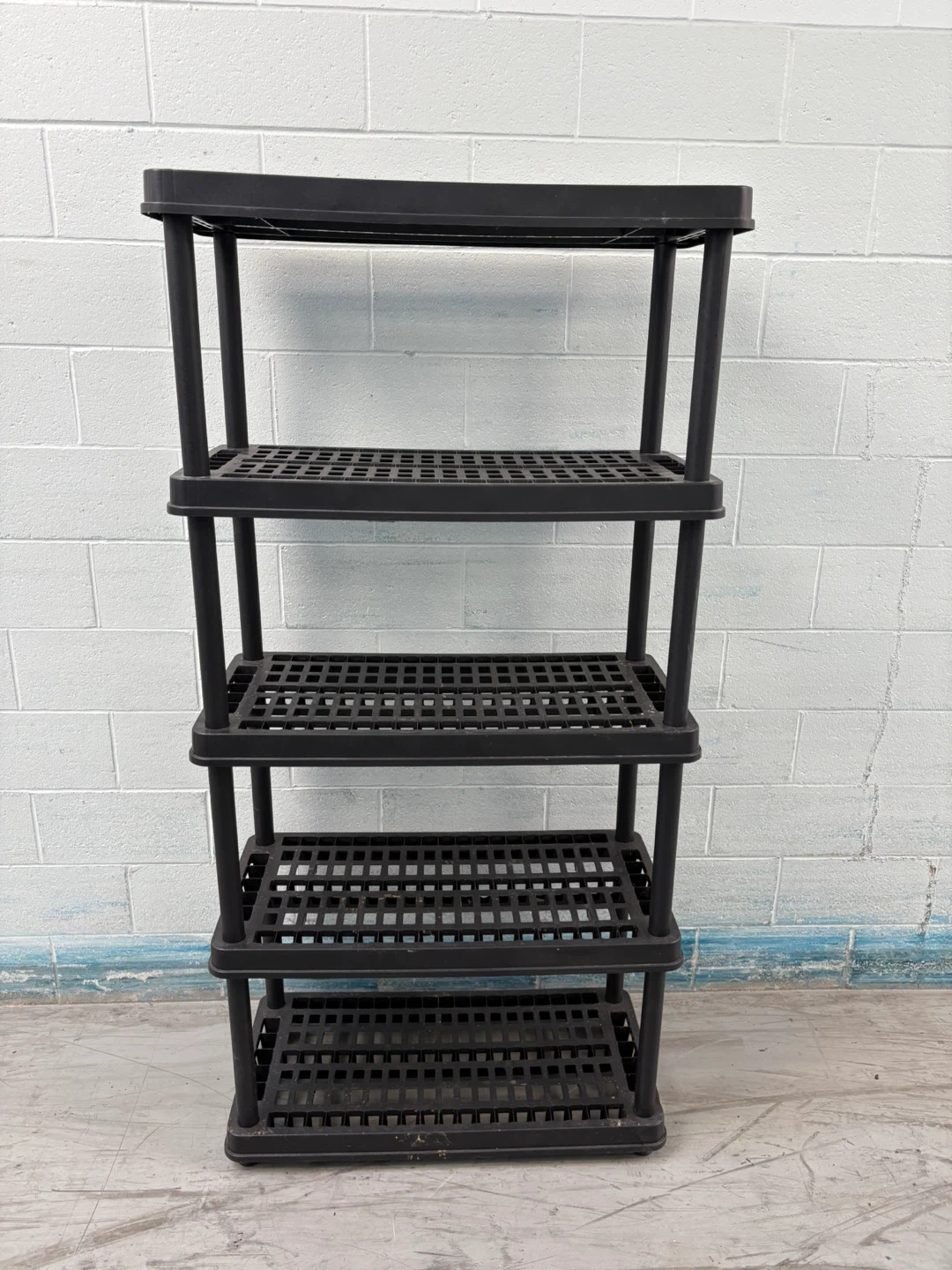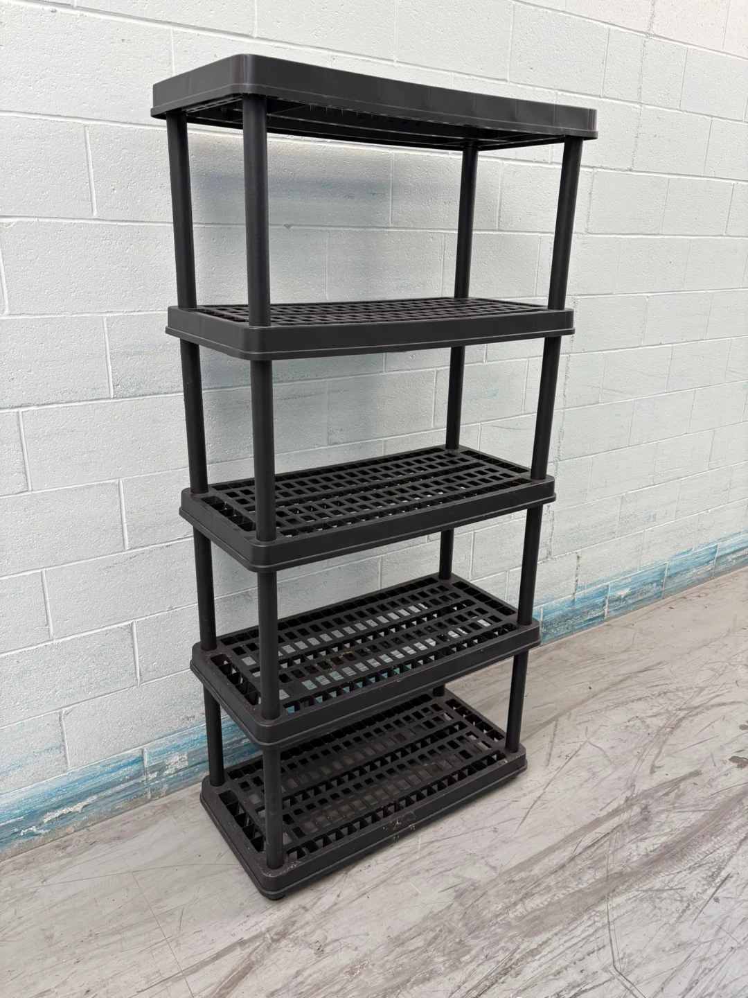 🧡good condition Black 5-Tier Plastic Shelf Selling a black plastic shelf with 5 tiers. It's in great condition and perfect for organizing your space! Great for the garage, basement, or anywhere you need some extra storage Measurements in last couple of pics $20 Pick up Victoria Park & O’Connor area