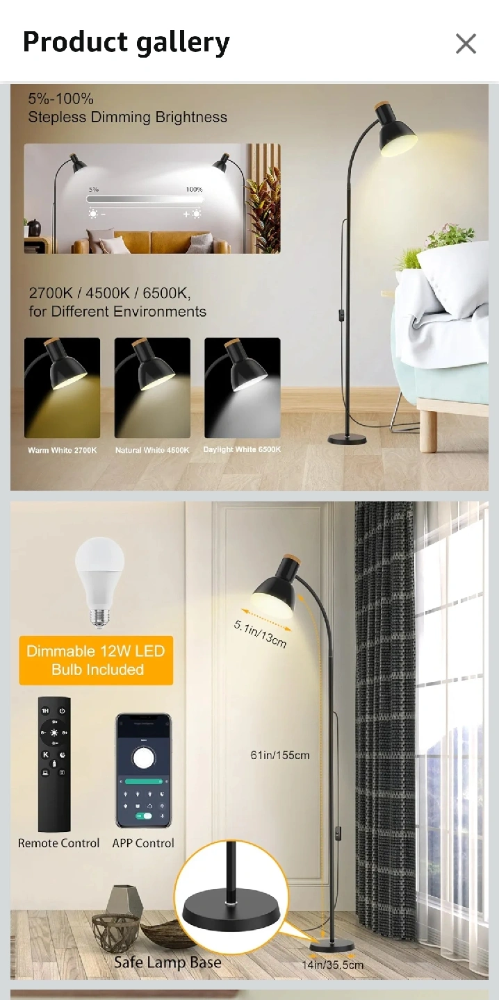 Selling a brand new adjustable gooseneck floor lamp! It's still in its original packaging. Key Features: - Adjustable gooseneck design - smart led bulb included - Stepless dimming brightness - App controlled - Different light temperatures