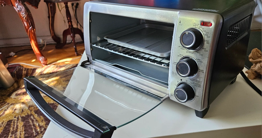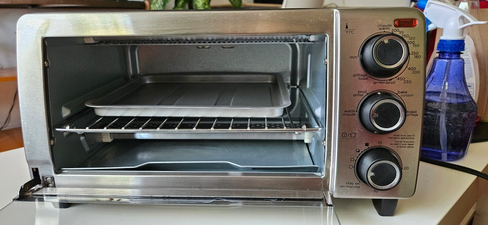 Selling a Black and Decker toaster oven. It comes with a baking pan and wire rack. Perfect for small kitchens or for when you don't want to heat up the whole oven! It's in great shape and ready for a new home