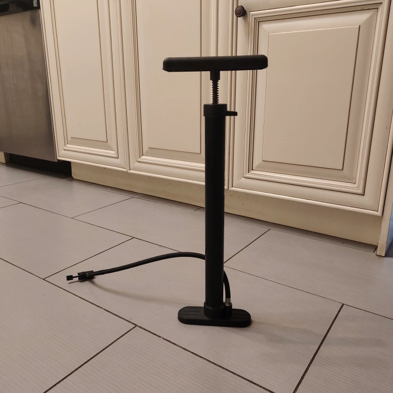Selling a floor bike pump in black. It's in great shape and ready to help you keep your tires inflated. Perfect for any cyclist!