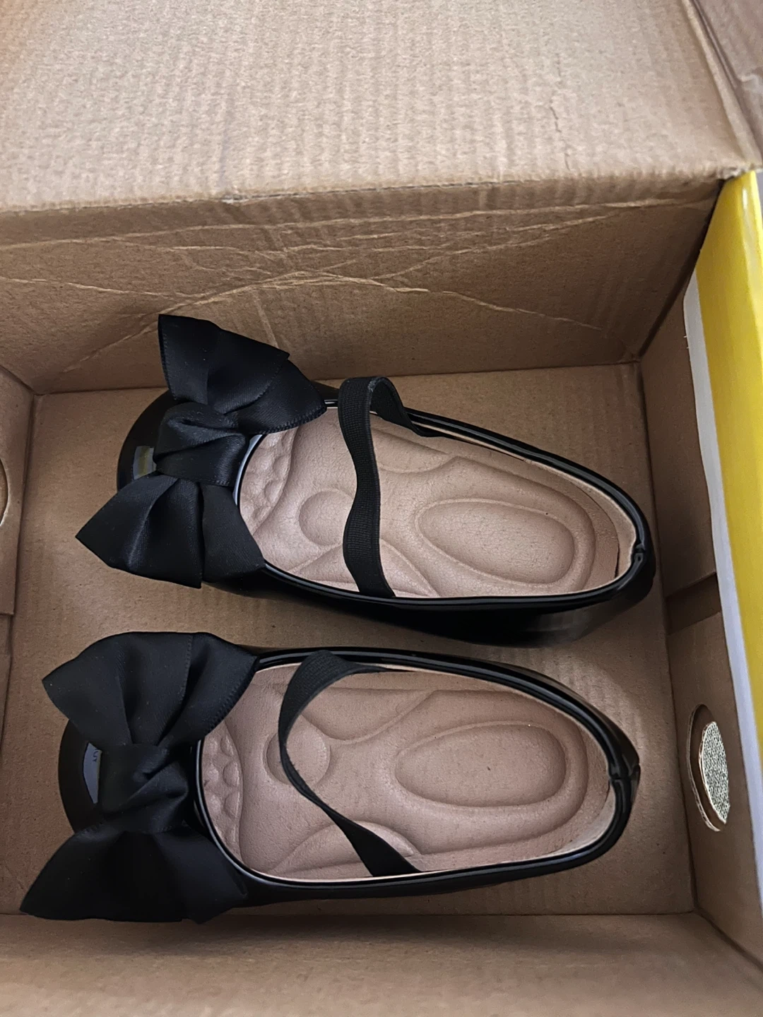 Cute pair of black ballet flats with a bow detail. These are perfect for dressing up or down. They come in the original box!