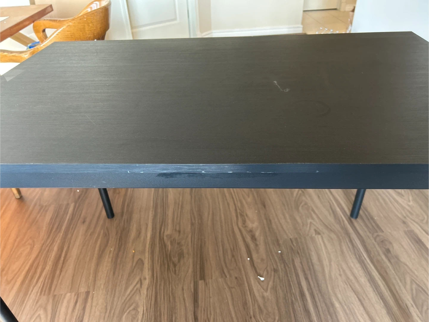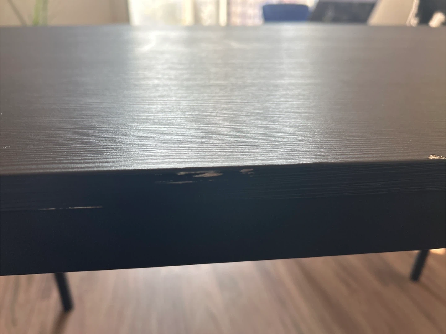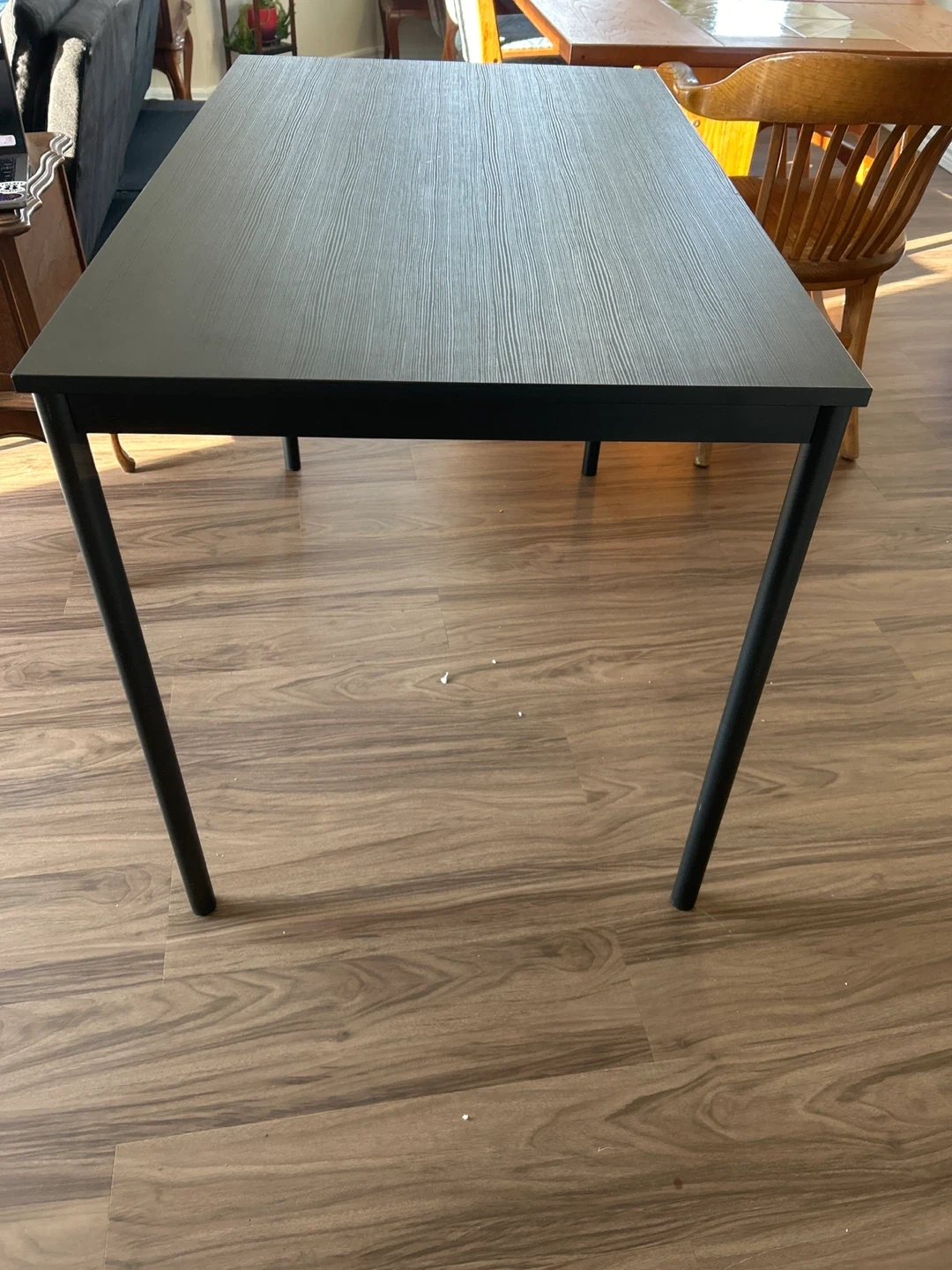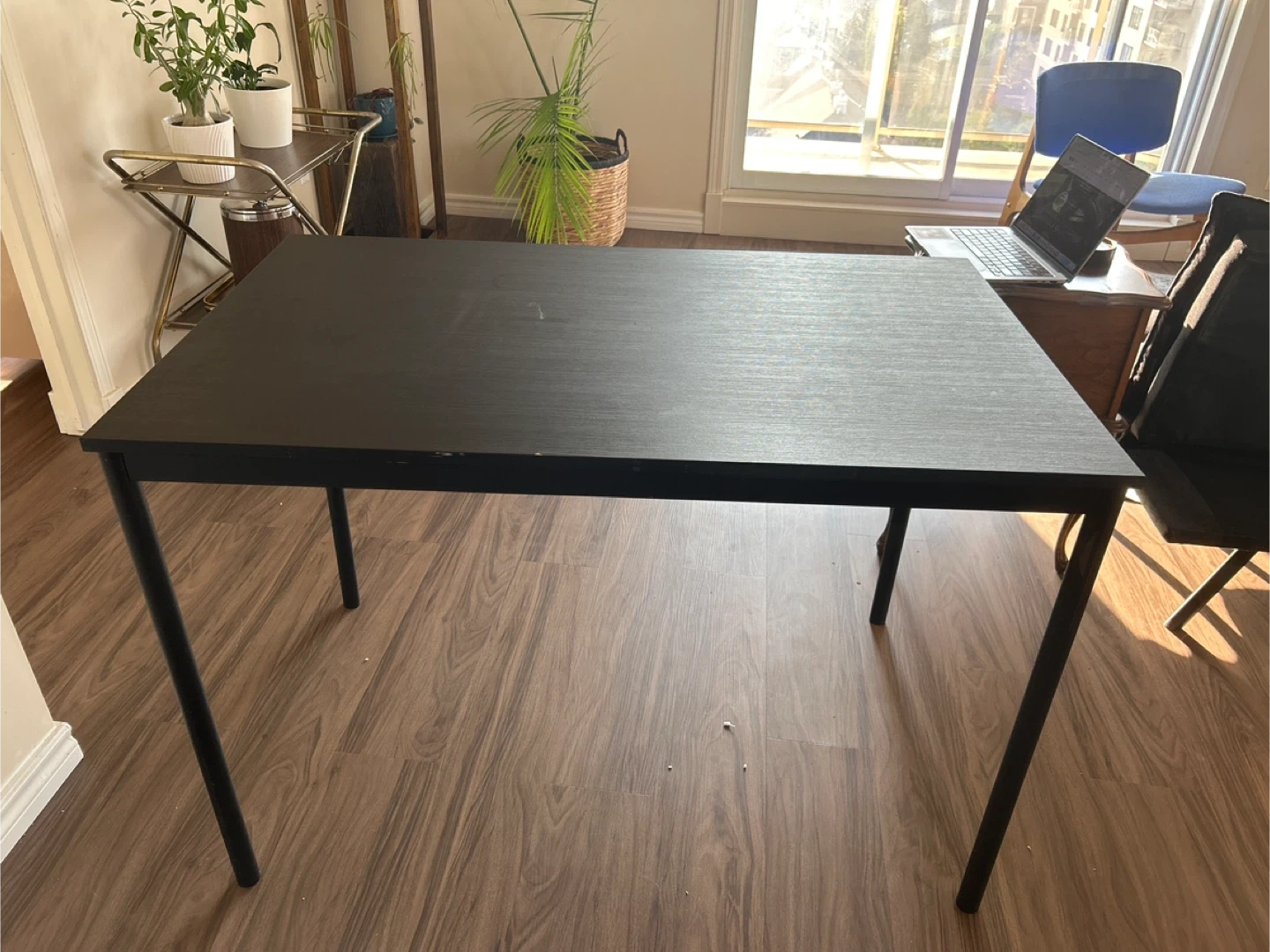 Selling a black Ikea dining table/desk. It has some minor wear and tear on the surface, as shown in the pictures, which could easily be touched up with paint. A sturdy table and perfect for a desk (as I was using it) or as a starter dining table!