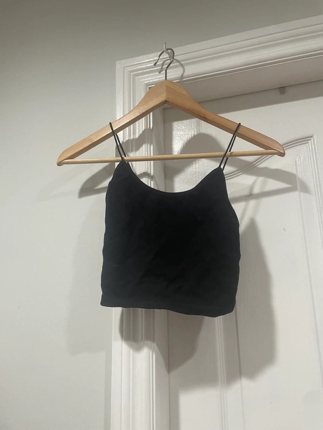 Selling a black cami top from It's in great condition and perfect for layering or wearing on its own! The material is soft and comfortable, making it a versatile addition to any wardrobe
