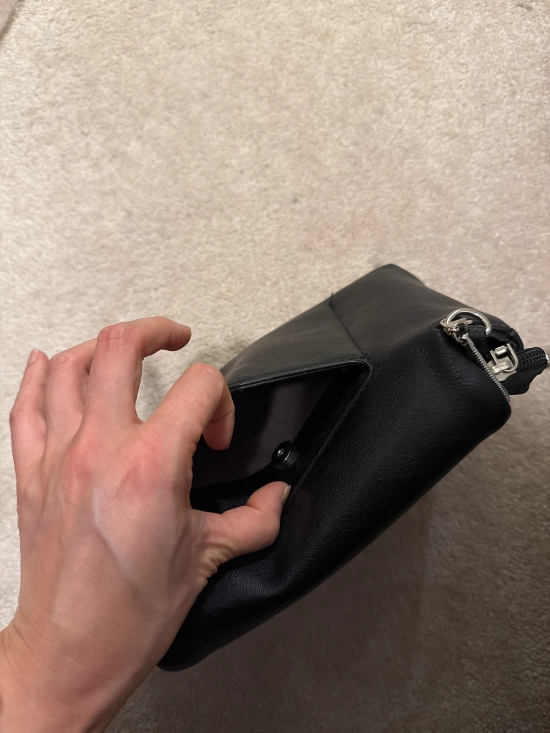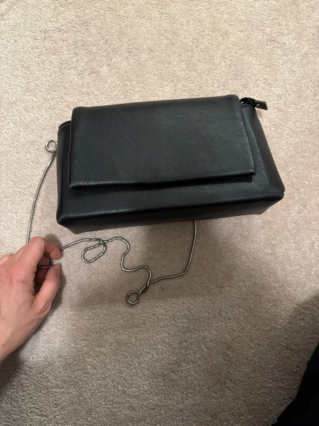 A stylish black shoulder bag with a chain strap! It's in great condition and ready for a new home. The bag features a flap closure and a zippered interior pocket, perfect for keeping your essentials organized