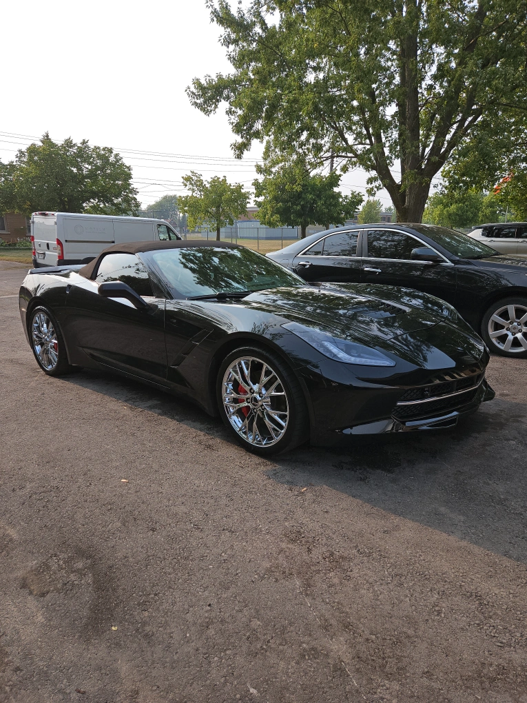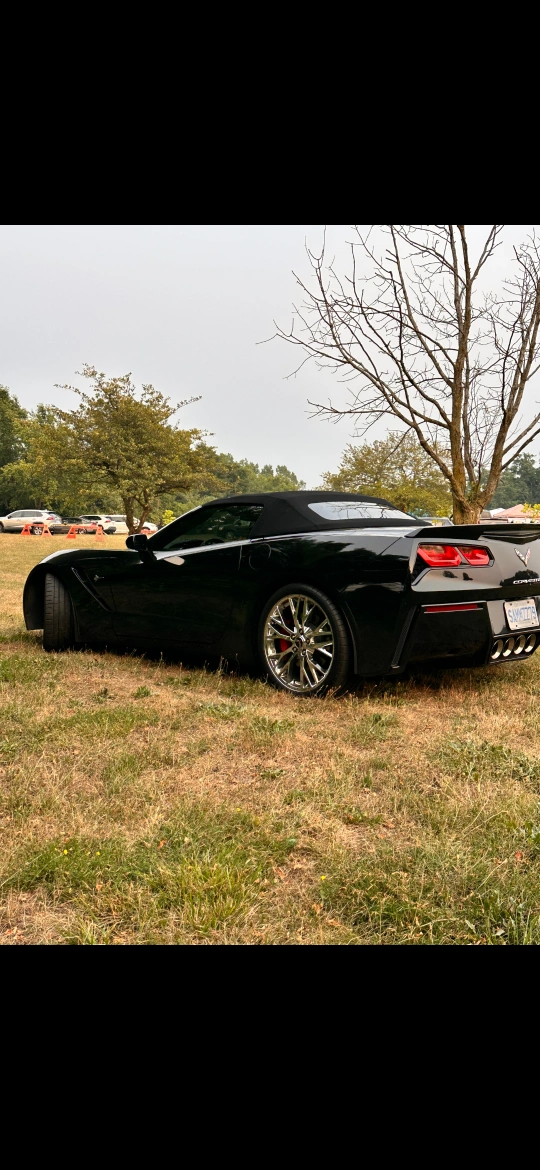 Selling a sleek black Chevrolet Corvette convertible. It's in great shape and ready for a new owner to enjoy the open road selling as is need few things call for more information