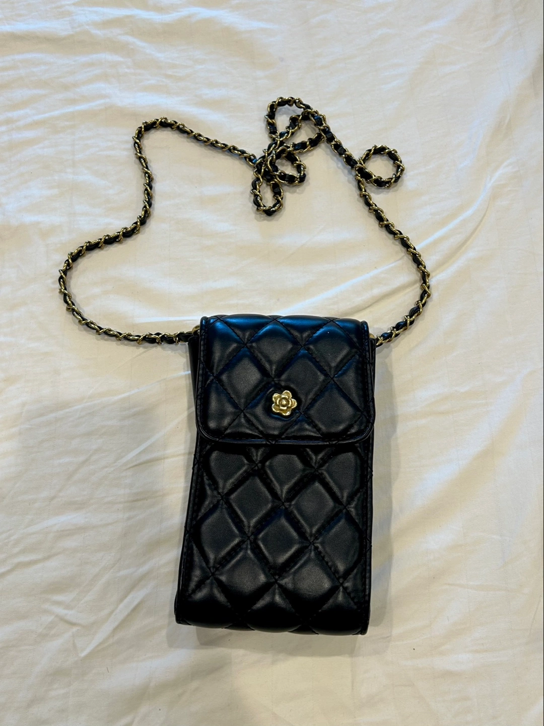 Small black crossbody bag, perfect for carrying essentials like your phone or a few lipsticks!! Feel free to message me if you have any questions!