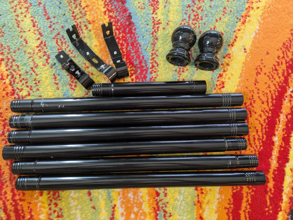 Selling a set of black curtain rods with mounting hardware. Great for adding a sleek, modern touch to any room. All pieces are in good condition and ready to install