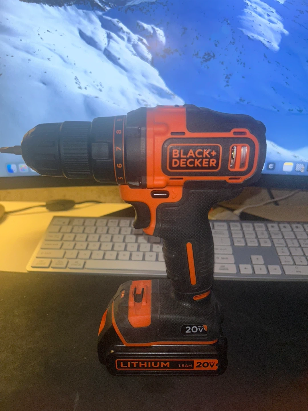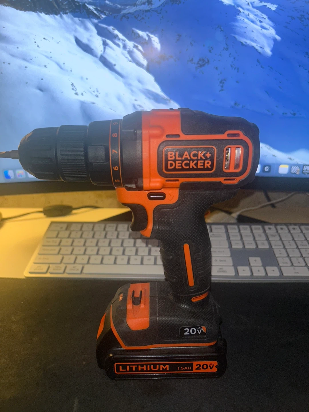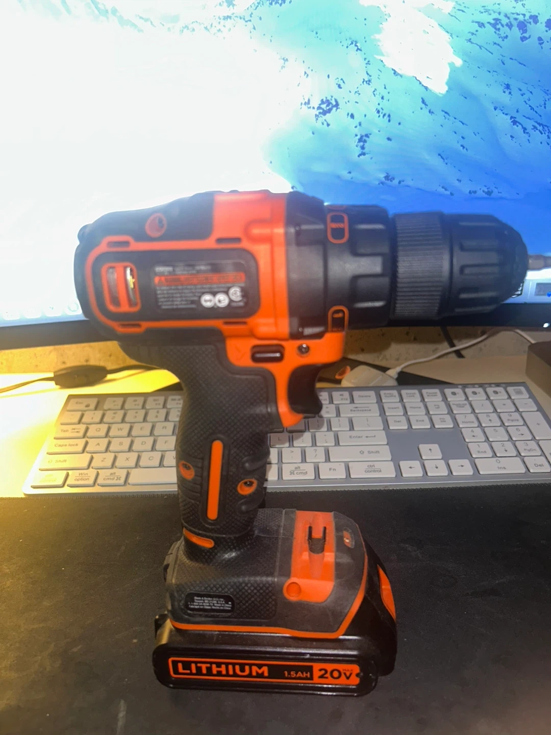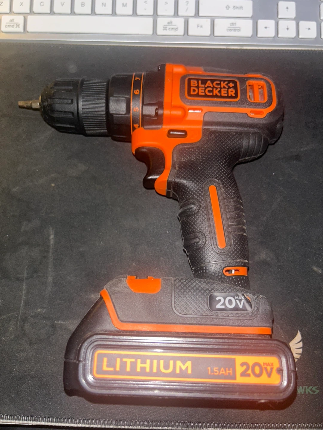 Selling a Black+Decker 20V cordless drill. It's in good condition and ready for your next project! The battery is a 20V MAX lithium 1.5Ah.