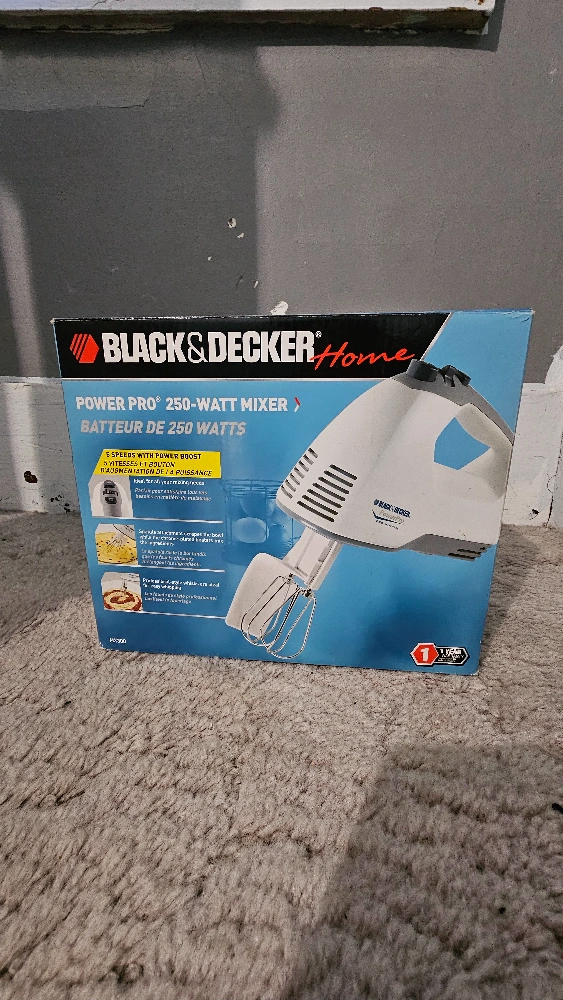 Selling a Black & Decker Power Pro 250-Watt Mixer! It comes with the box and all the original attachments. This mixer has 5 speeds with a power boost, perfect for all your baking needs. It's in great condition and ready for a new home!