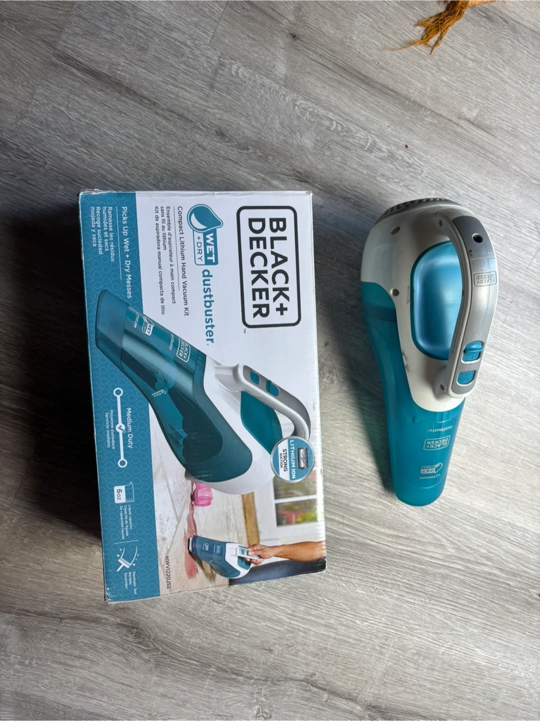 Selling a Black+Decker Wet+Dry Dustbuster hand vacuum! It's a compact lithium hand vacuum kit, perfect for quick cleanups. The vacuum is designed to pick up both wet and dry messes. Comes with the original box!