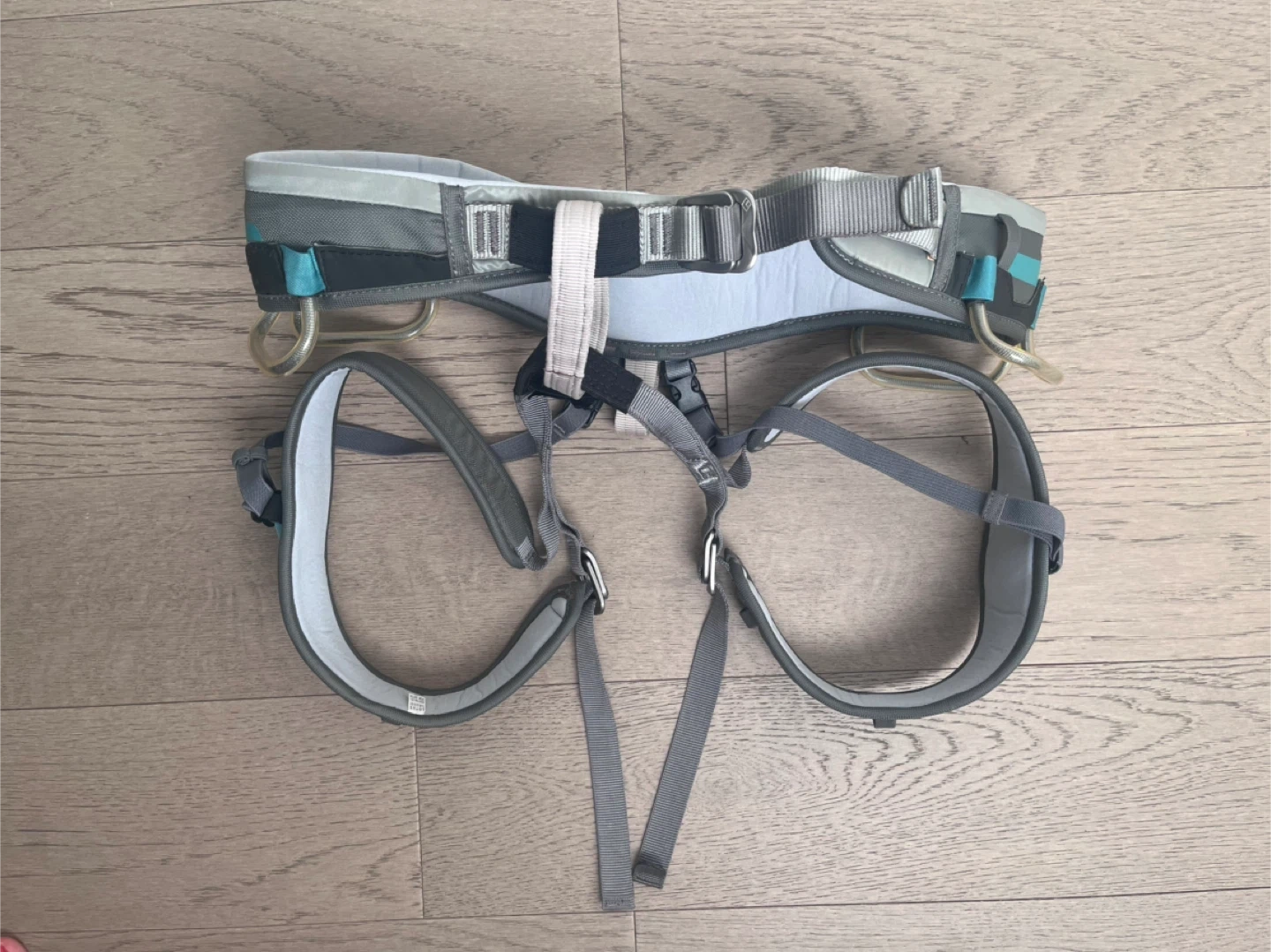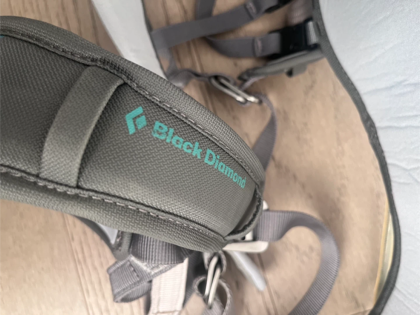 Lightly used Black Diamond climbing harness. Turquoise and grey in colour. The gear loops have slightly yellowed but otherwise in great condition! It features a comfortable design for women and durable construction. Features: - Hot Forged Speed Adjust waistbelt and leg loop buckles - Women's-specific, bullhorn-shaped waistbelt and leg loops - 4 Pressure-molded gear loops - 12 kN-rated haul loop - 4 Ice Clipper slots - Four-season performance and comfort - Bombshell abrasion patches are 20 times more durable than standard nylon fabric - Black Diamond's Dual Core XP Construction evenly distribute load without pressure points