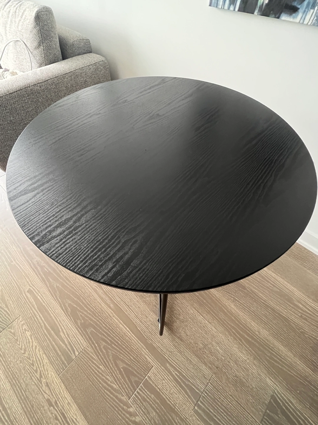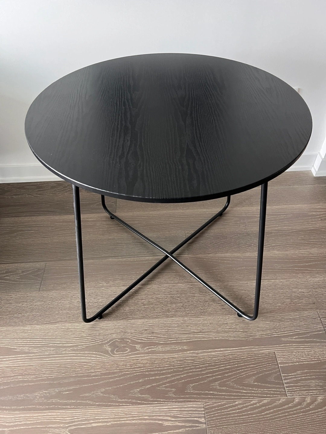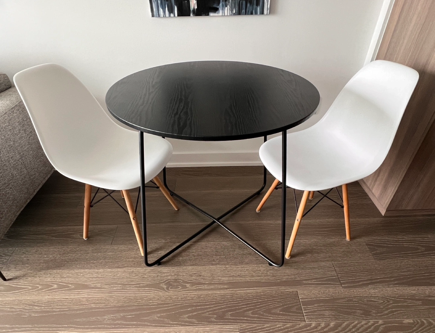Black laminate top with matte black tubular legs. Great condition Chairs not included