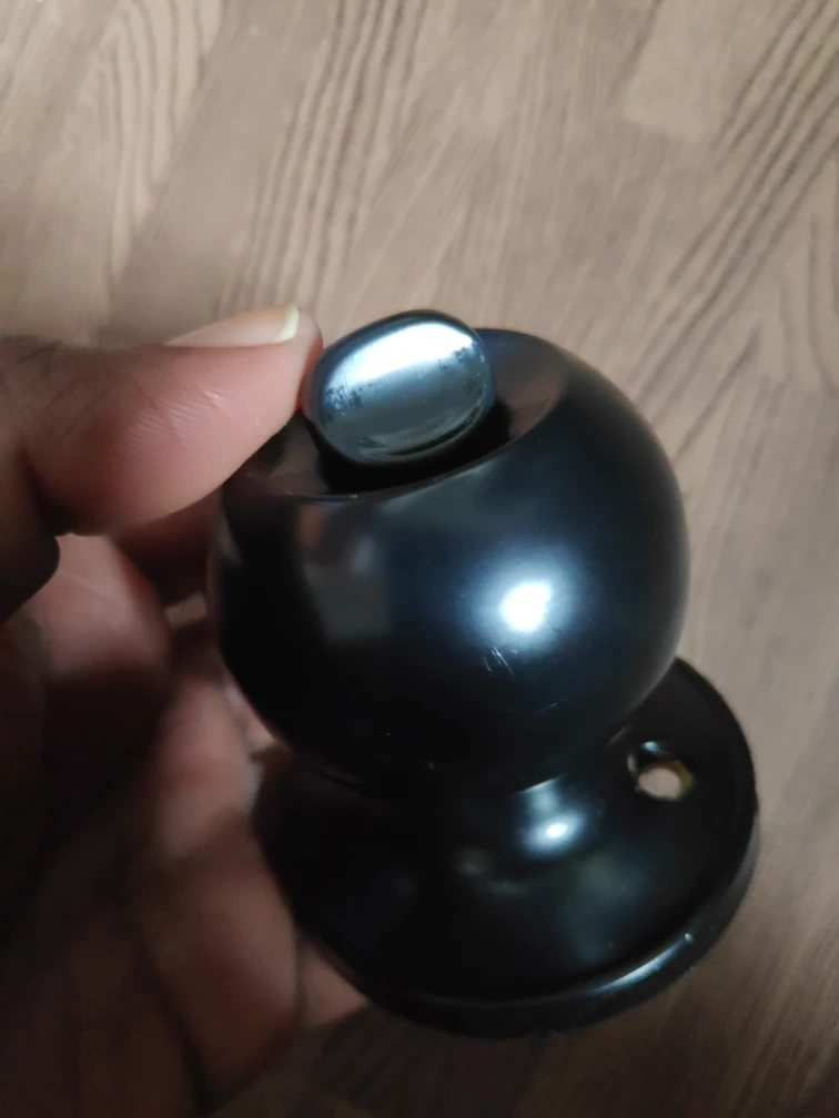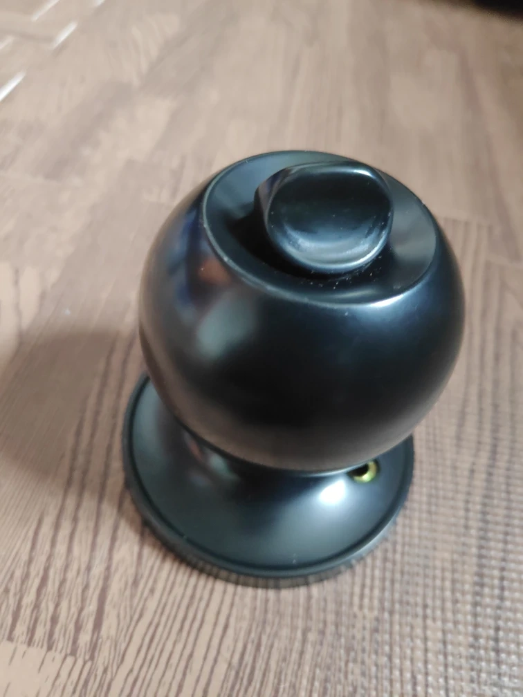 1 Black spherical door knob. Interior door knob. Does not include mounting hardware. Unused.