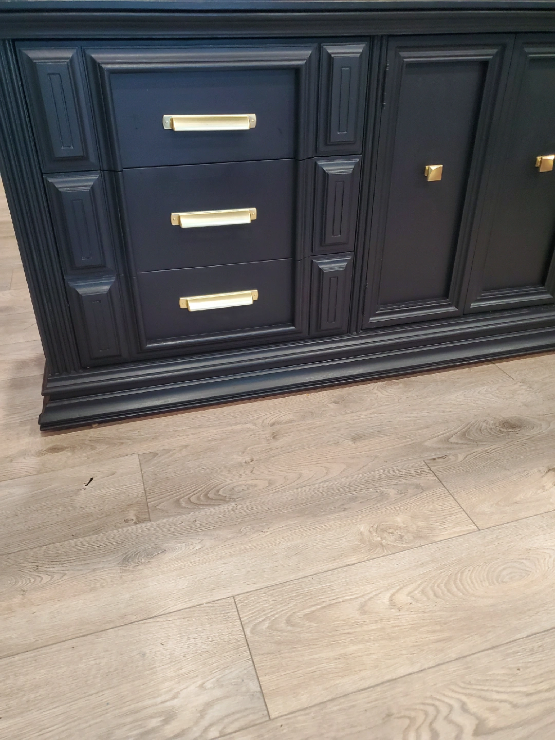Selling a lovely refinished black dresser in Fusion's Coal Black. 9 drawers. It features new gold handles and a classic design. It's in great condition and would look perfect in any bedroom or living space