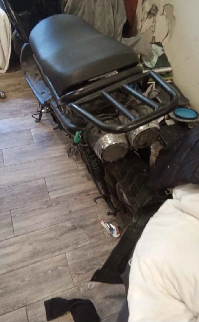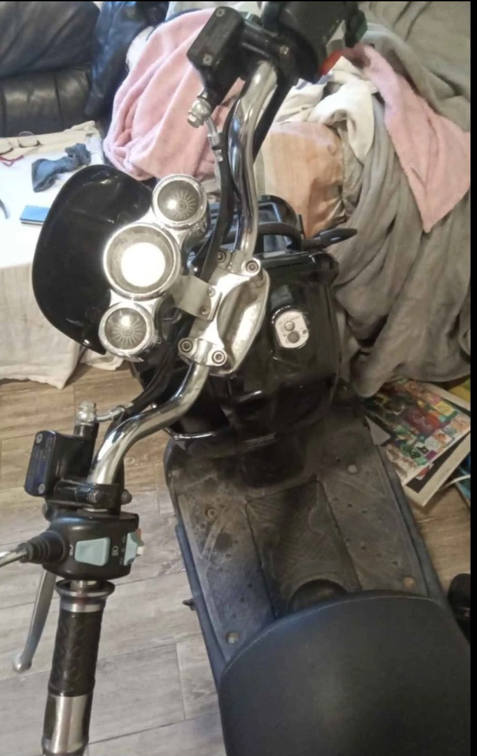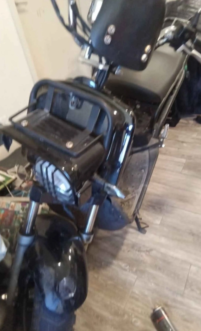 Selling a black electric scooter. It shows signs of use and wear. Please see photos for details goes 70 kmh