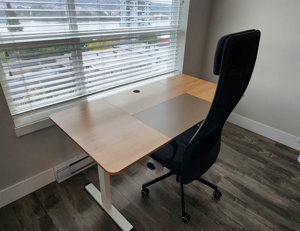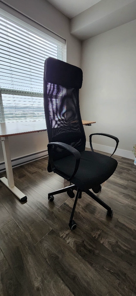 55" Gymax Electric Standing Desk (Natural Top / White Frame) Bought: February 2024. Features: Smooth electric height adjustment, large 55" x 28" desktop, sturdy metal frame. Condition: Like-new. 2. IKEA High-Back Ergonomic Office Chair (Mesh/Black) Model: Similar to the popular MARKUS or JÄRVFJÄLLET high-back chairs. Bought: 2022/2023. Very well maintained. Features: High mesh back for breathability, headrest, and built-in lumbar support. Very comfortable for long workdays. Condition: Good, no rips, tears, or functional issues. Pricing Total Retail Value: Over $450 CAD