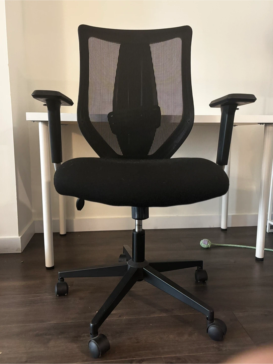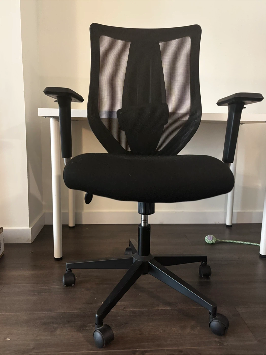 Selling a comfortable black ergonomic office chair! It's in great shape and ready to support you through long workdays or study sessions. The mesh back provides good ventilation, and it's adjustable for optimal comfort