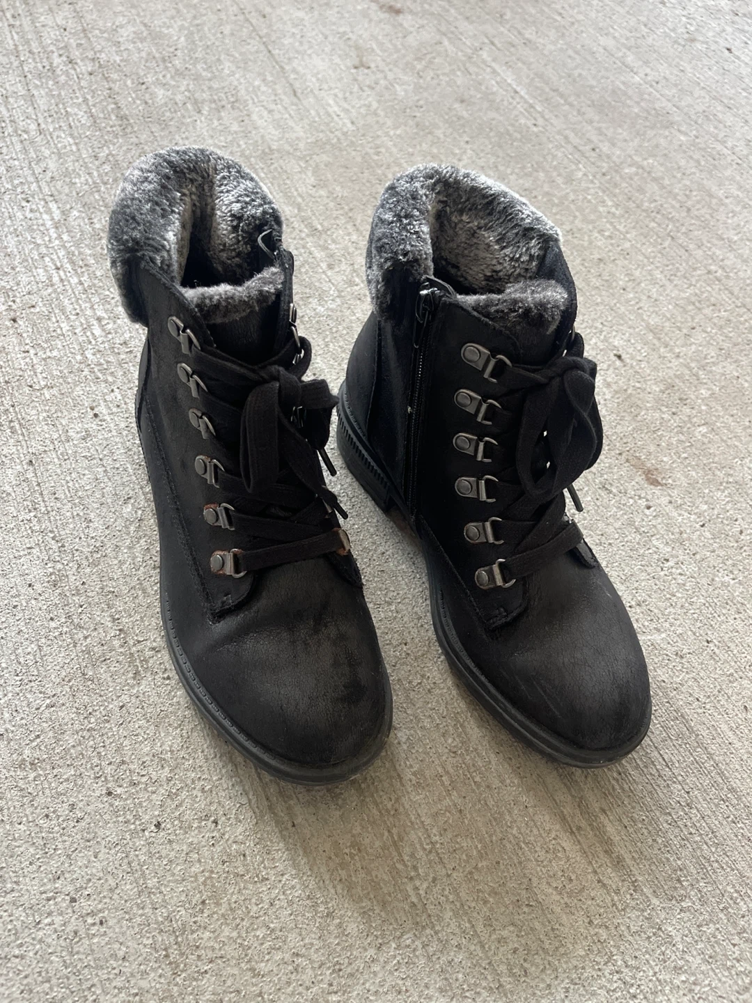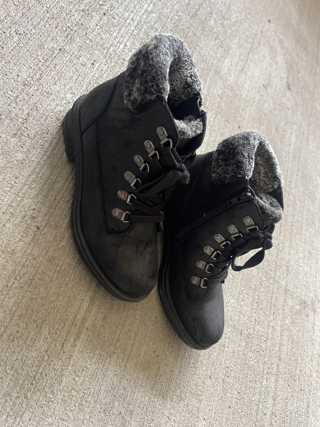 Selling a pair of black boots with a fabric upper and faux fur trim. They are in great condition and size EU 38. Perfect for the colder weather!