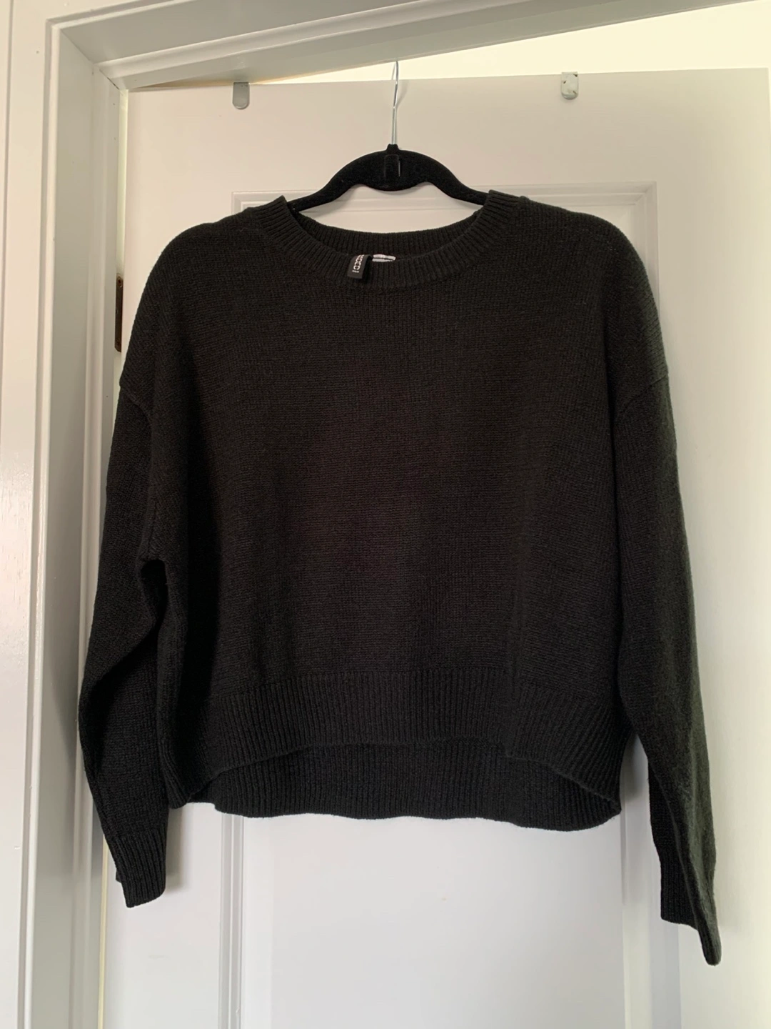 Women's black sweater. Long sleeves, round neck. Soft knit material.