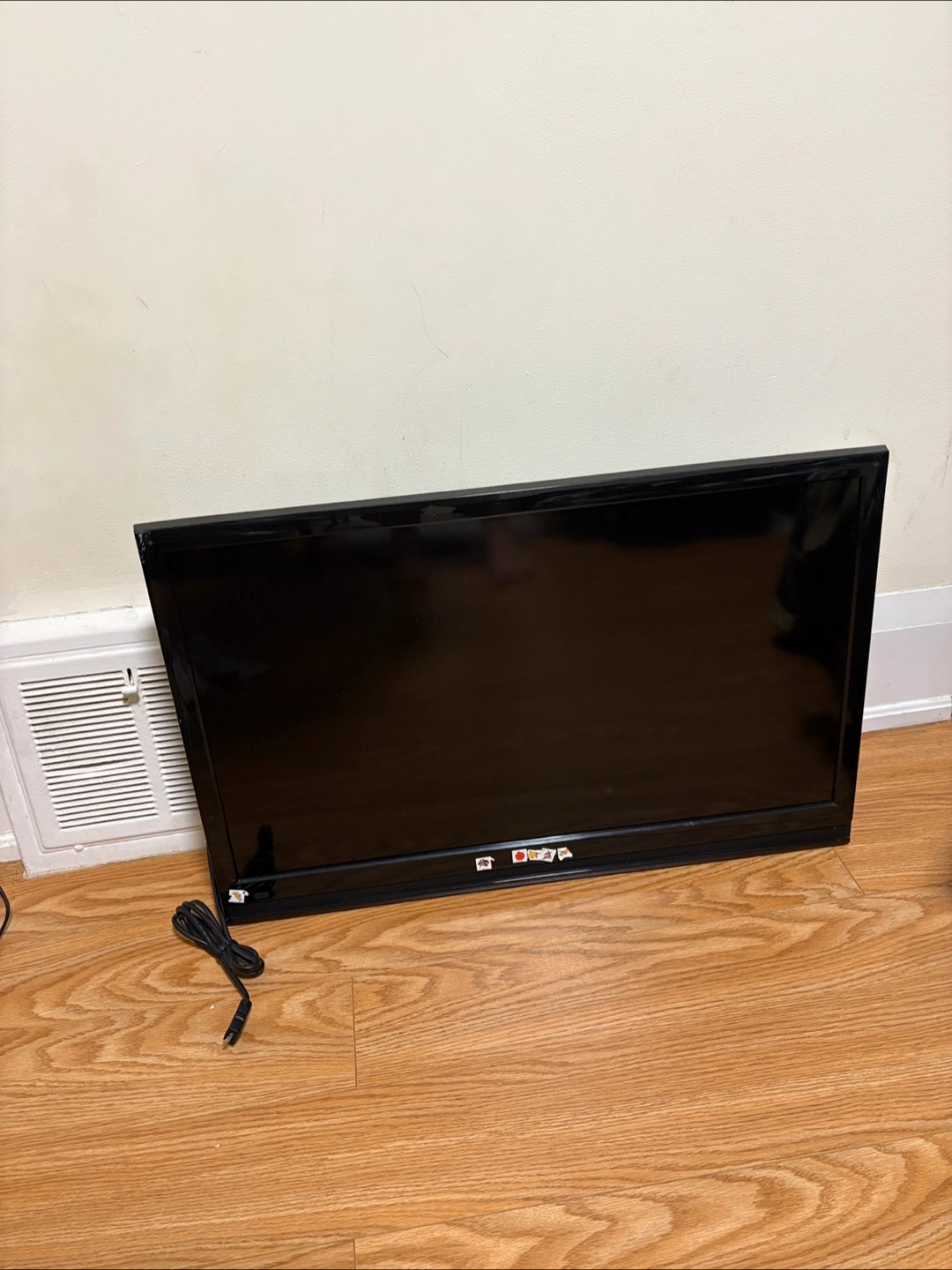Selling a black flat screen TV. It comes with a power cable and appears to be in good condition. Perfect for a spare room or kids' play area!