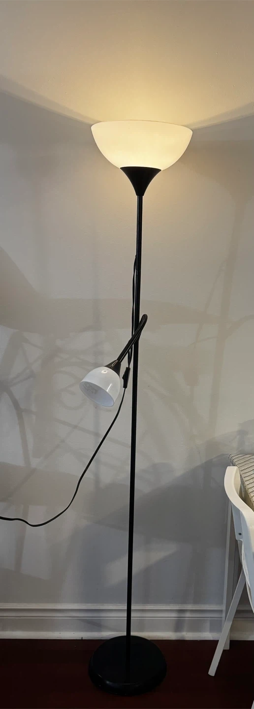 Selling a floor lamp in great condition! It features a sleek black design with an upward-facing main light and an adjustable reading light. Perfect for adding some extra light to any room $30 Yonge and finch area
