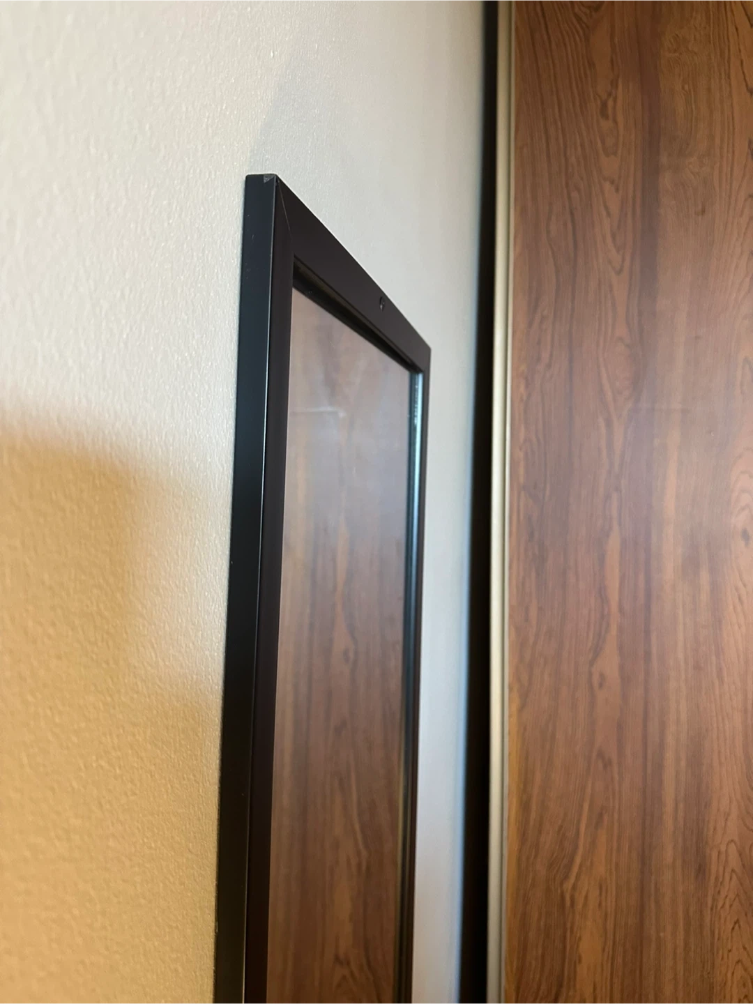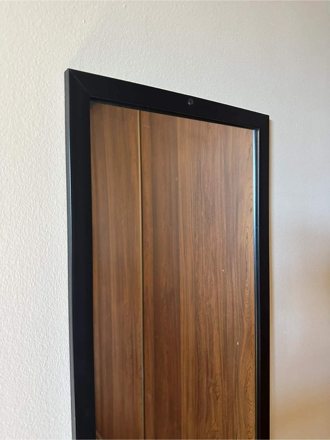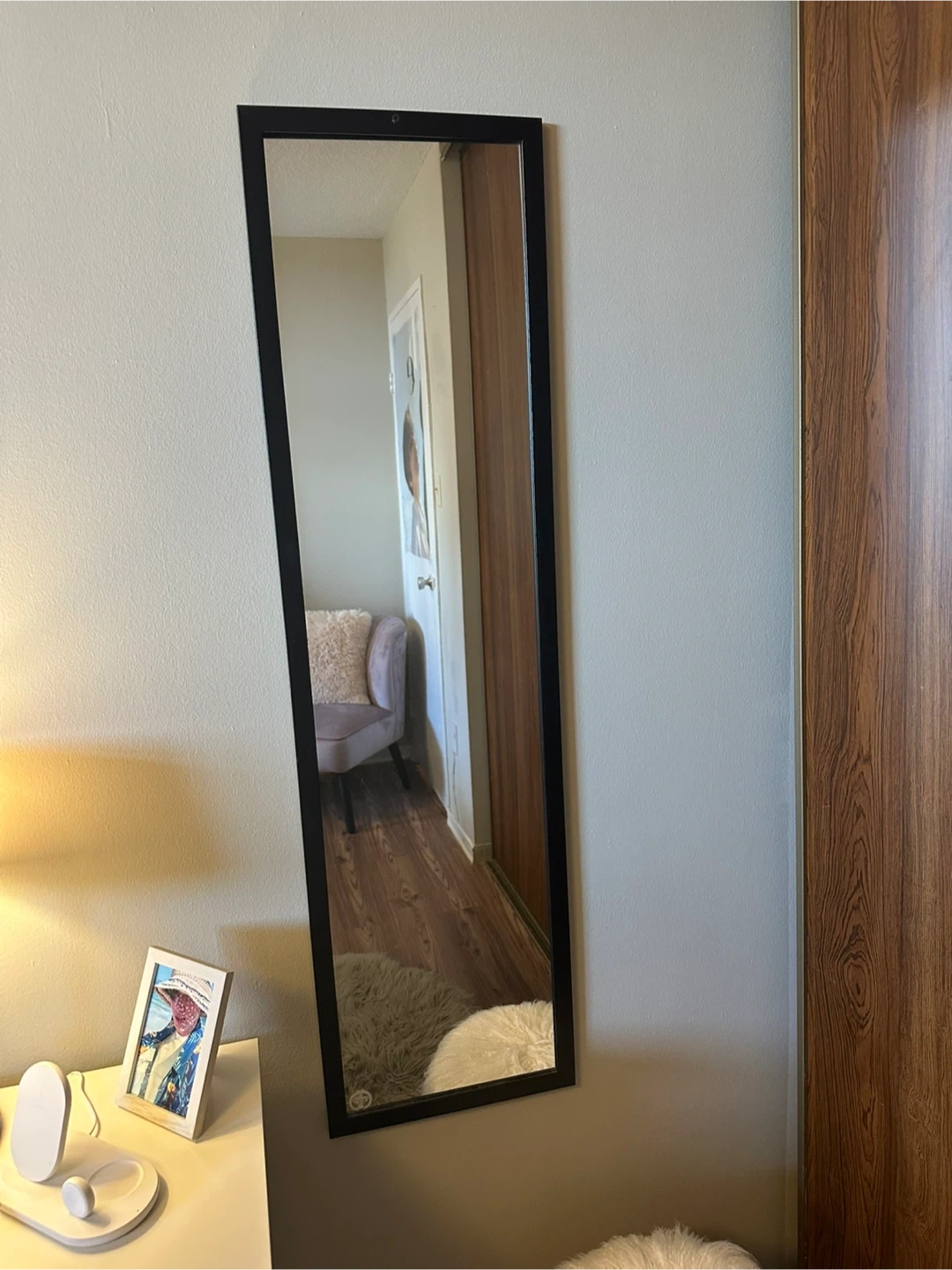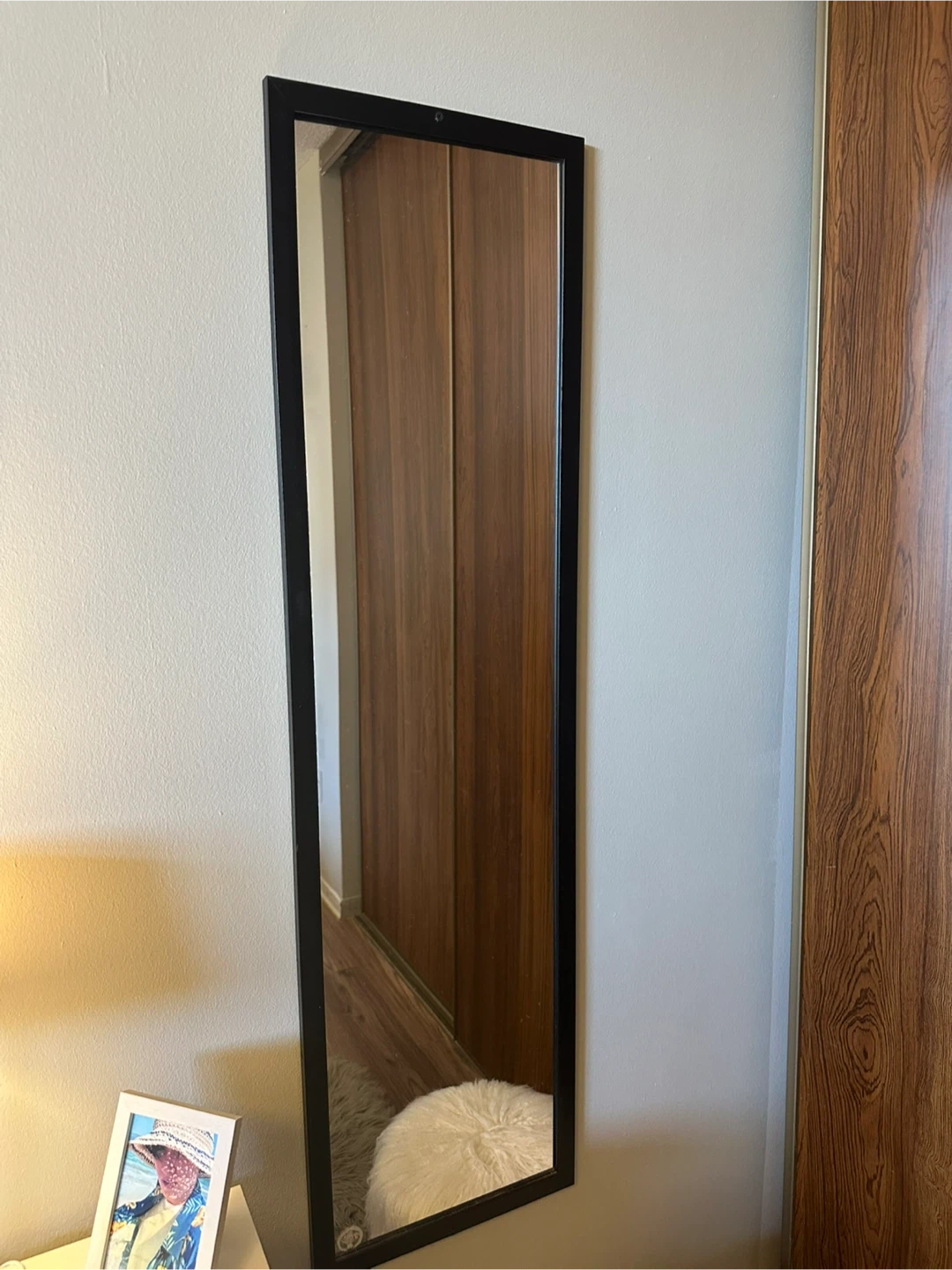 Selling a full length mirror with a sleek black frame. It's in good condition and ready to brighten up your space. Perfect for checking your outfit or adding depth to a room. Size: 125cm x 34cm