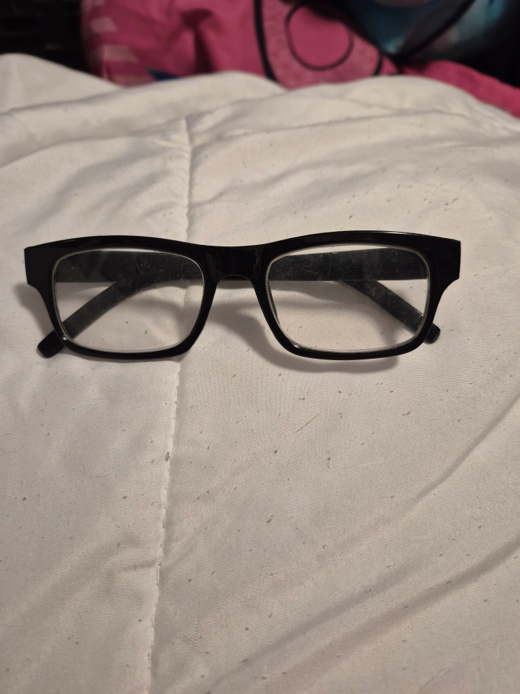 These are a pair of black framed glasses. They are in good condition and ready for a new home